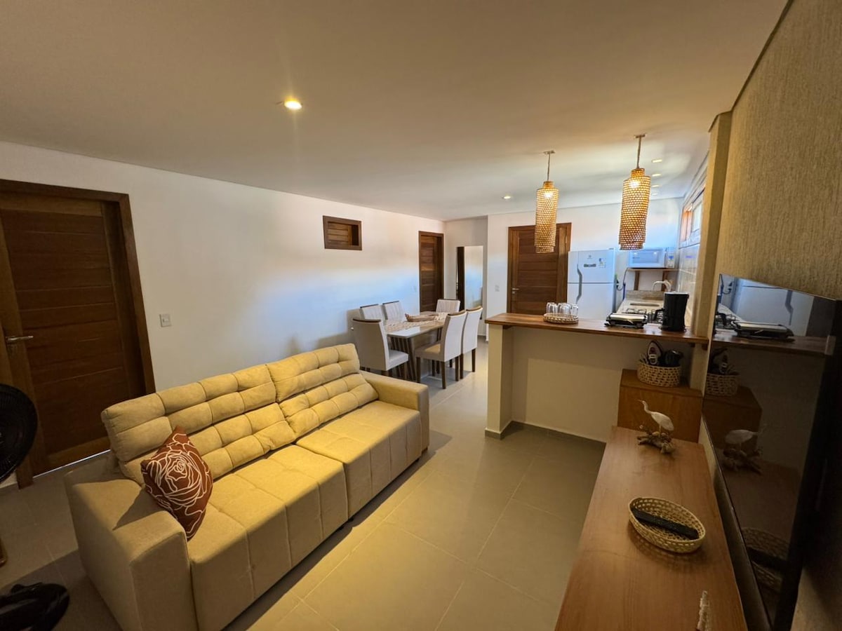 Apartamento perfeito para quem procura tranquilidade, conforto e comodidade em uma das praias mais lindas do país. Completo e ideal para casais, amigos e família. Sala e cozinha integrada, suíte com cama queen, TV, ar condicionado, chuveiro elétrico e todos os eletrodomésticos disponíveis para uso. Você vai se apaixonar não só por Jeri, mas também em compartilhar seus dias conosco.