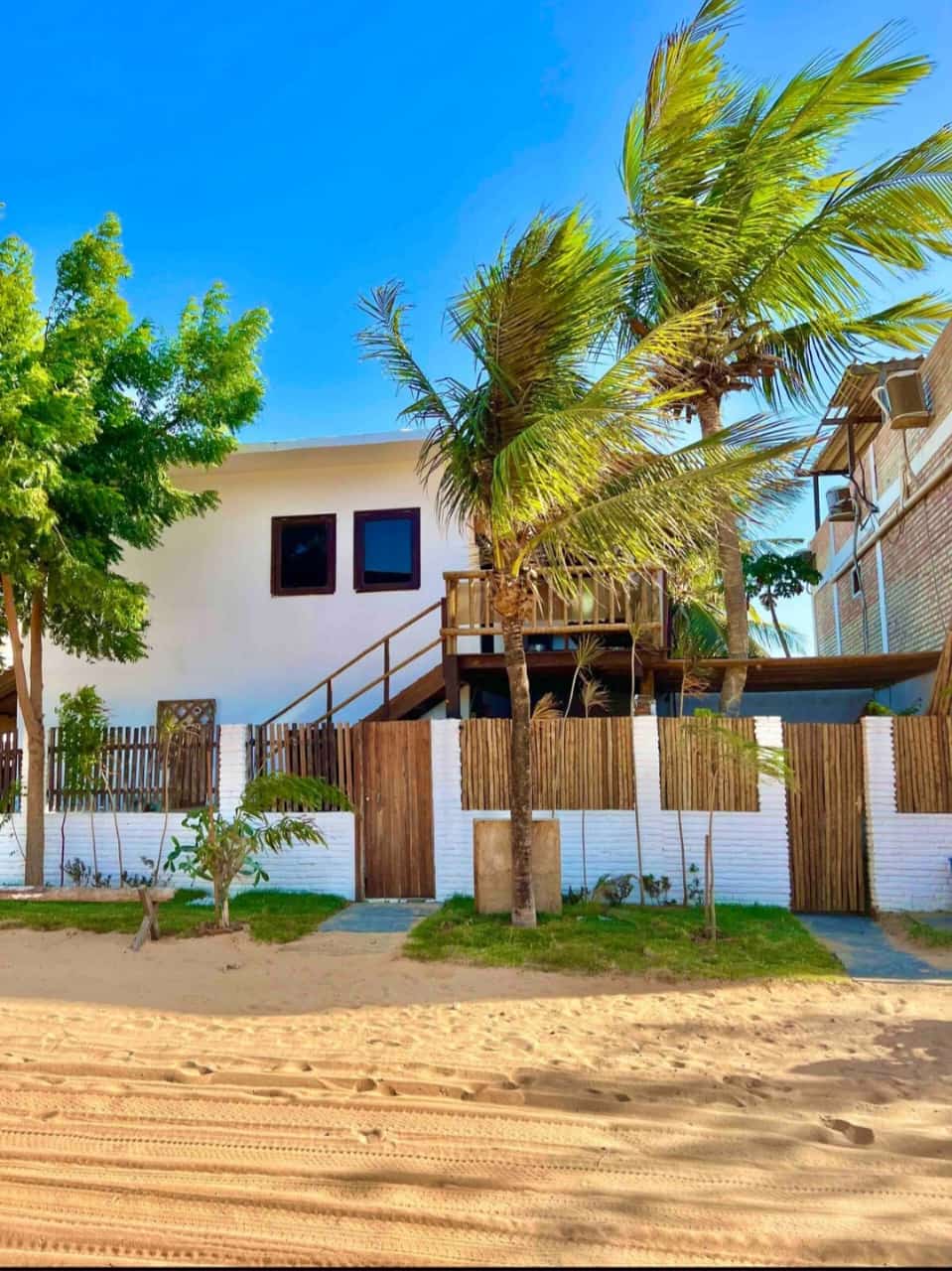 Casa na praia do Preá idealmente situada em frente ao mar. O ambiente é delicado e preservado nessa casa familial de duas suites (casa F) cozinha, veranda muito confortável, churrasqueira e uma piscina a temperatura sempre óptima com chuveiros e banheiro sociais. Adicionando a Casa M , la Familia pode receber até 12 pessoas e 1 bebe ao total. Serviço de limpeza diário incluso (período de 7 dias : 1 folga) Café da manhã com custo adicional, mediante pedido.