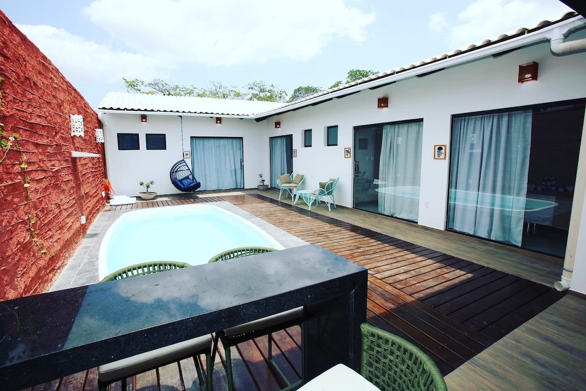 🌿 Casa Coara - Comfort e natura a 100 metri dalla Laguna di Paradiso. La casa offre una grande suite con bagno, cabina armadio, salotto, cucina completa, terrazzo di 70 m e un gran giardino con amache. Gli ospiti di Casa Coara possono usufruire della colazione (extra) e del servizio di spiaggia della pousada Casa B&B a soli 50 metri. Decorato con amore e cura per i dettagli, è il posto perfetto per rilassarsi, staccare la spina e contemplare la natura. Vi sentirete a casa fin dal primo giorno!
