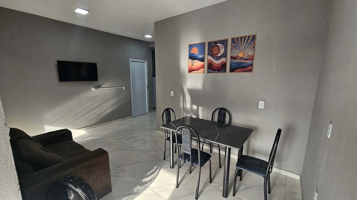 Excelente acomodação para toda sua familia no centro de Jijoca. A casa é super charmosa, ventilada e com vizinhança excelente. Fica situada a apenas 350 metros da lagoa do Paraíso/Jijoca. Você estará no local mais estratégico da região, do centro de Jijoca saem os 4x4 a todo momento para a Vila de Jericoacoara, além de ter a melhor oferta de passeios para toda a região. A rua é muito tranquila, se você trabalha remoto não terá problemas. :)