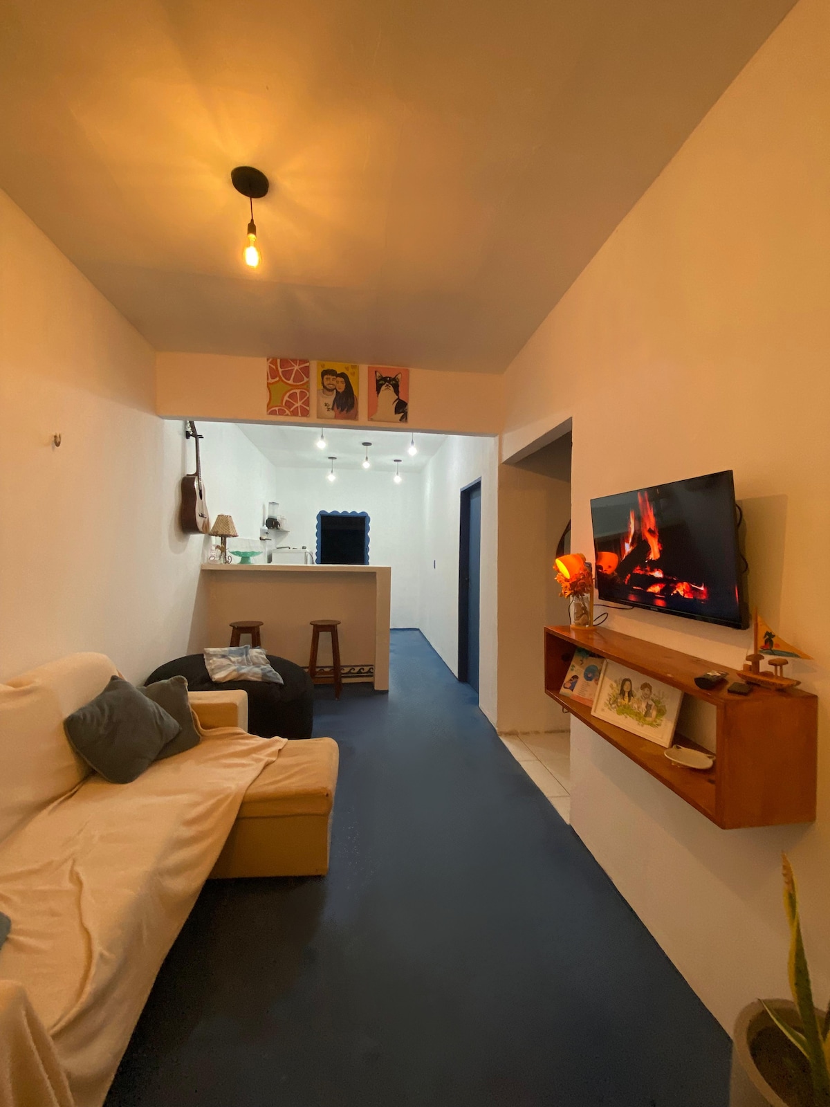 This bright and comfortable two-bedroom apartment is located on the second floor of a well-kept building in the center of Preá, Ceará, just a short walk from Rancho do Kite. From there, you can easily reach the beach through their grounds and enjoy everything the area offers, including the restaurant, kite school, and beach structure, all within walking distance. The apartment feels open and fresh, with large, centrally positioned windows designed to capture Preá’s constant winds. Natural airfl