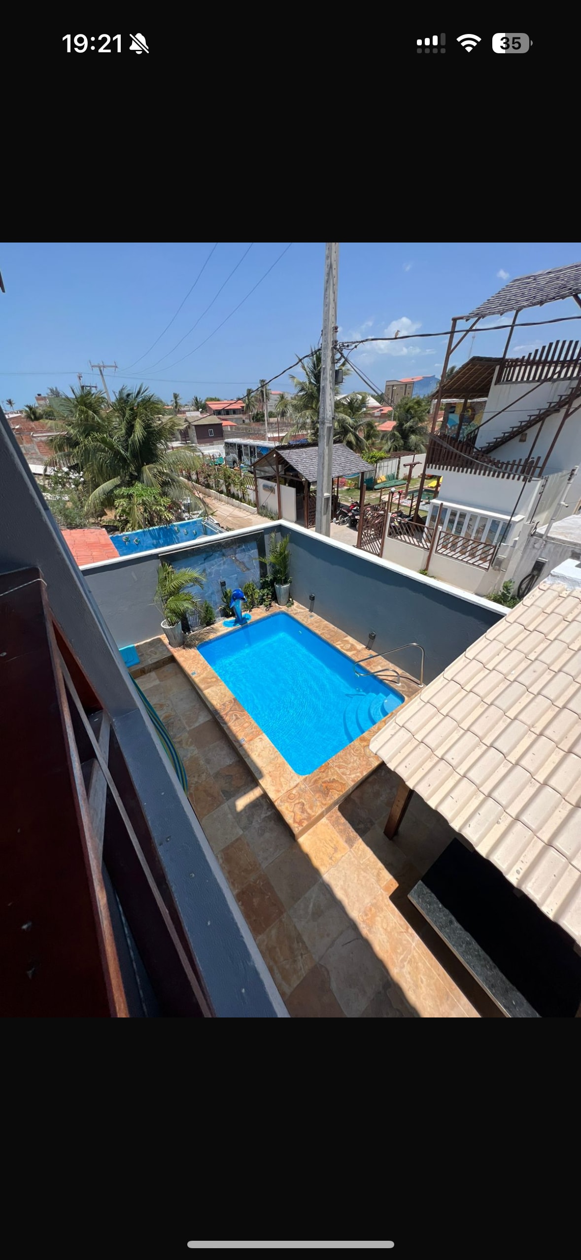Nossa casa possui 2 quartos. O primeiro, com acesso pelo jardim frontal, vista da cama para o mar, cama queen, banheiro e pequena cozinha americana com fogão, geladeira e bancada O segundo , com 1 cama king e 1 cama de casal, banheiro e frigobar (sem cozinha), com acesso pelo jardim lateral Ambos com ventilador de teto e ar condicionado Os quartos são interligados por 1 porta interna e também possuem acesso independente Piscina térrea profundidade 1,50m Pequena piscina infantil no mirante