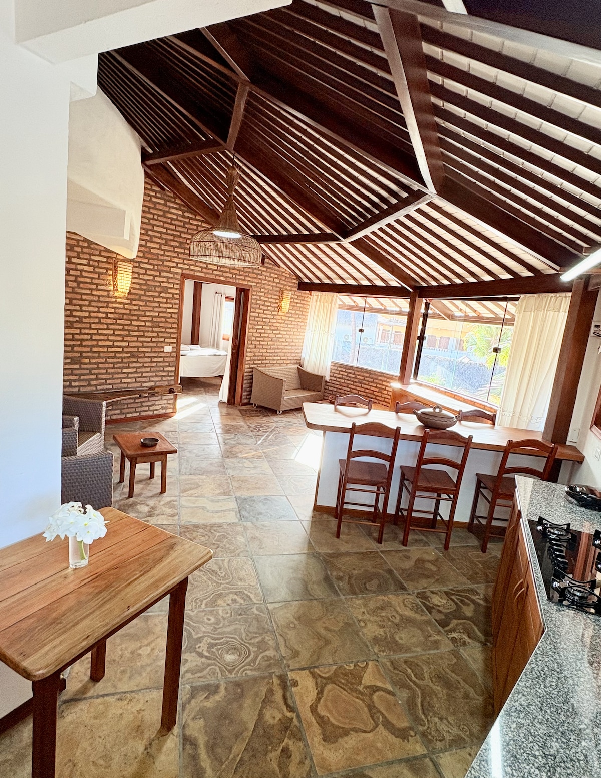 Casa Bela é uma casa de luxo totalmente equipada, situada numa localização privilegiada com vista panorâmica ao mar além de oferecer acesso direto á praia de Guriu. A casa apresenta uma mistura de design rústico, moderno e elegante. Tem 2 suítes espaçosas com charmosas camas de casal tamano queen com mosquiteiro, ar condicionado, tv led Smart Android 32' e Janelas que oferecem vistas deslumbrantes do mar e do mangue. A casa possui lavadora de roupas, churrasqueira, cofre e cameras de segurança.