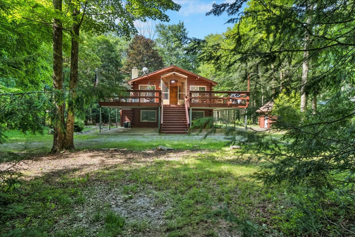Need to escape and commune with nature? Welcome to my updated cabin, situated 2 hours away from NYC and 1.5 hours from Philly. The home can accommodate up to 8 guests with 3 queen-sized beds and 1 bunk bed (Note: bunk bed is in its own room). Enjoy unlimited hot water from the tankless water heater, wifi, streaming television, a fully stocked chef's kitchen, outdoor gas grill, indoor gas fireplace and outdoor firepit. Listing includes access to private pool, lake, tennis, beaches.