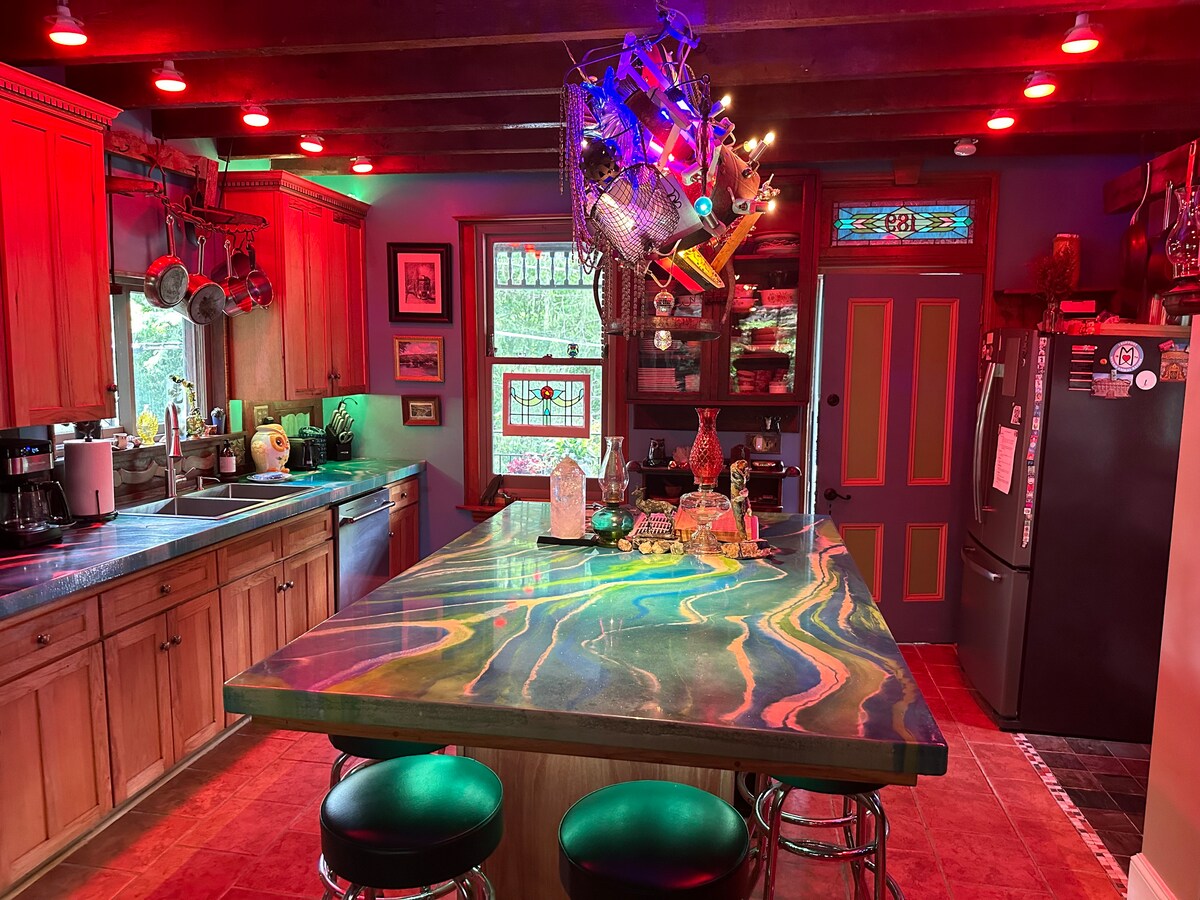 "The Old Jail Hideaway" is located in the heart of Jim Thorpe 5 houses up from the Old Jail Museum. We have on-site parking in the rear of the house offering 3 parking spots. Walking distance to everything in town. This is an entire house rental. The kitchen has a dishwasher, stove, refrigerator, cookware and a COFFEE BAR. We have the Alexa device for streaming music, authentic Victorian furniture and china or just every day plates.