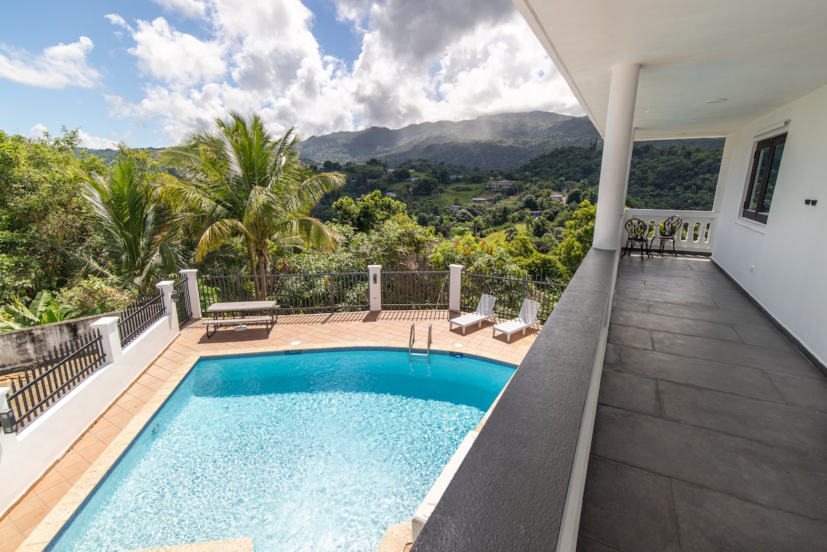 Escape to paradise in this beautiful family-friendly villa in Río Grande, Puerto Rico! Enjoy panoramic views of El Yunque rainforest from the wrap-around balcony or relax by your private pool. Perfectly located near beaches, restaurants, and adventures. The home features an outdoor grill, fun games, and a serene river right in the backyard — ideal for creating unforgettable memories with family and friends in a peaceful tropical setting.