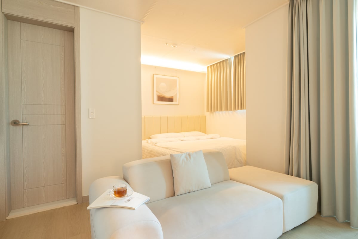 안녕하세요~ 침대 위에 누워서 일출을 감상하고 오션뷰를 즐기는 곳! 모든게 준비되어 있는 아늑한 신축 오션뷰 숙소입니다💕 1층에 편의점이 위치해 있고 숙소는 고급 매트리스와 호텔침구류를 사용하여 매일 교체하고 있습니다.👏 ✅ 롯데월드&오시리아테마파크&루지&이 케아 차량 5~10분거리 ✅ 송정해수욕장&죽도공원 도보 1분 ✅ 해변열차 도보 5분 ✅ 송정역동해선 도보 10분 ♥️ 바다뷰와 일출을 함께 감상 ♥️ 서퍼들의성지 송정비치 바로앞 ♥️ 깨끗하고 안락한 신축건물에서 힐링