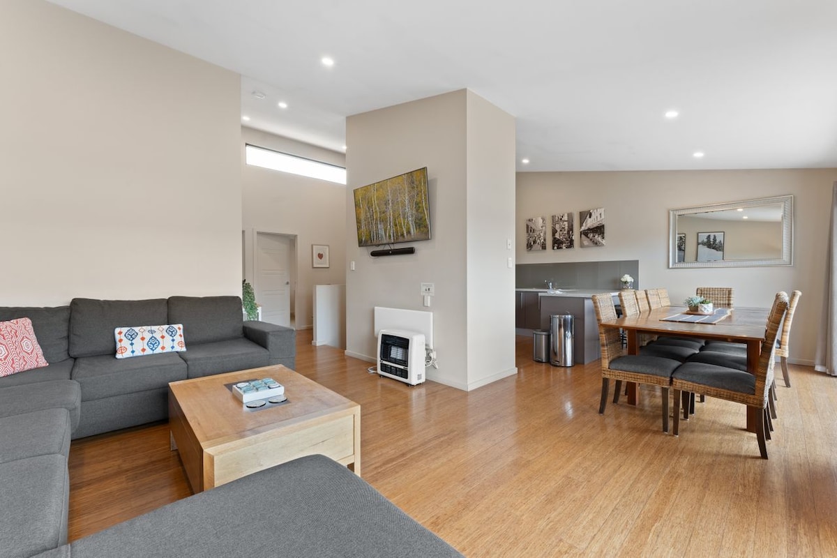 Welcome to the Snowy Mountains! This beautifully finished modern home welcomes you with views of Lake Jindabyne. This is our home and was designed and styled with care. With high end furnishings and scattered with quirky pieces you’re bound to feel at home. We hope you enjoy our home as much as we do! ** please note: there is a studio attached to this townhouse that has access to the backyard. There is no access to the yard from the main house. No garage access in summer months (Oct-May)**
