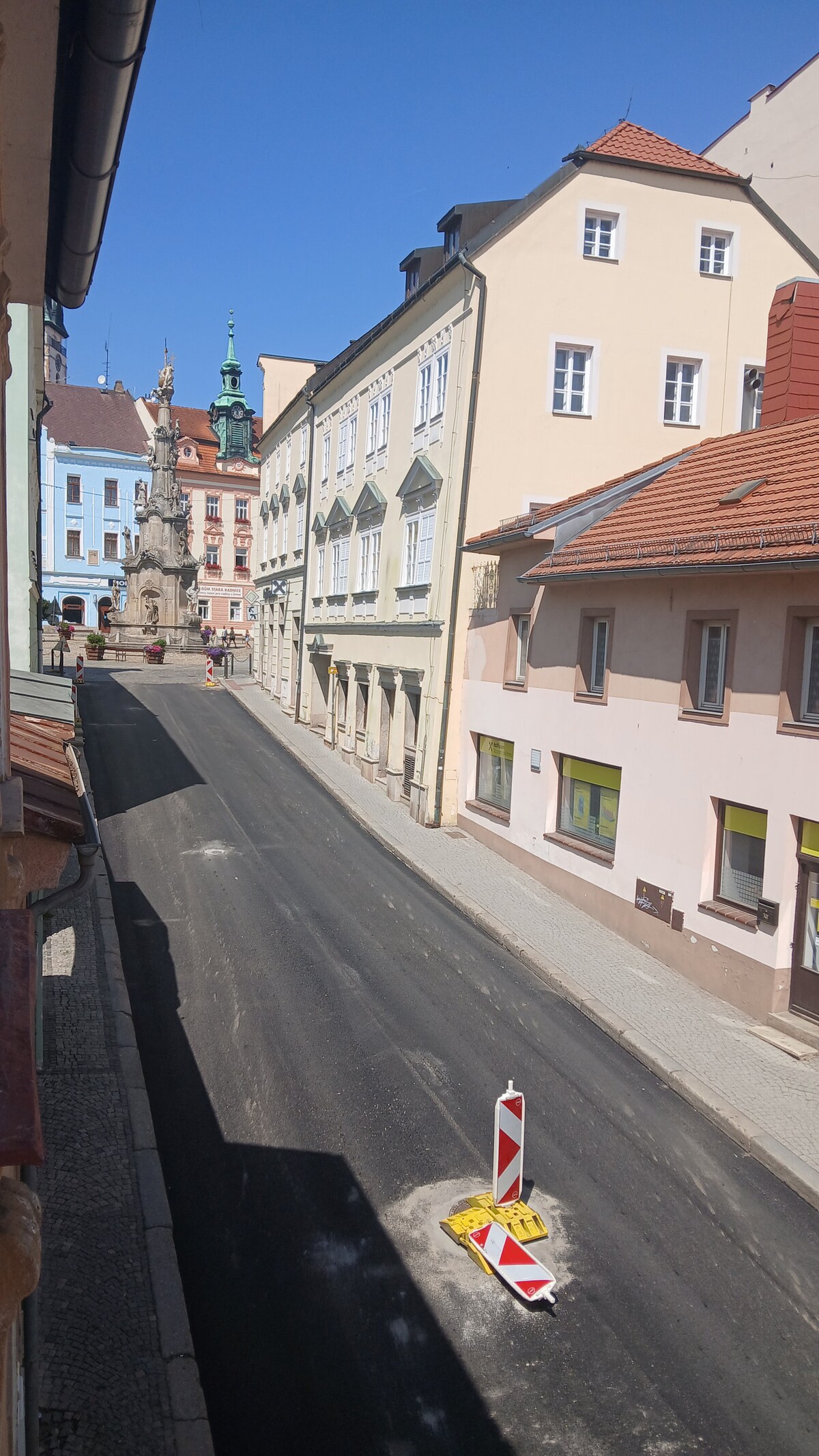 A quiet room with private bathroom in a historical house in the center of Jindrichuv Hradec. The house is located in the very center with many shops and restaurants within walking distance.