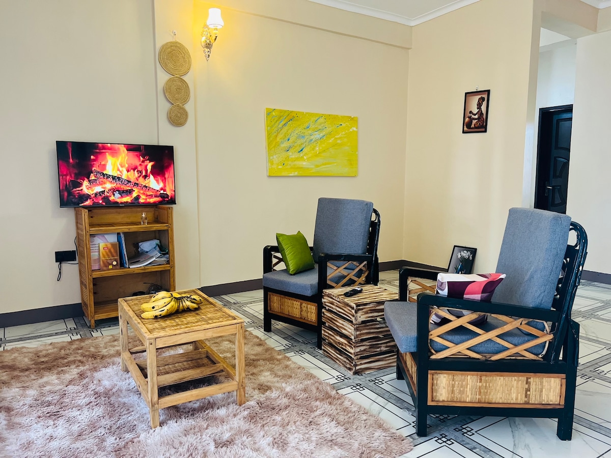Welcome to our spacious lakeside apartment, rented out in its entirety because we value the privacy of our clients. The apartment contains 4 bedrooms with private bathrooms, all air-conditioned with flat-screen TVs, wifi and spacious balconies. In addition, a well-equipped kitchen, dining area and large living room are at your disposal. Outside, enjoy the serene gardens overlooking a superb view of Lake Victoria ideal for barbeques. Also, a private chef is a call away at an affordable price.