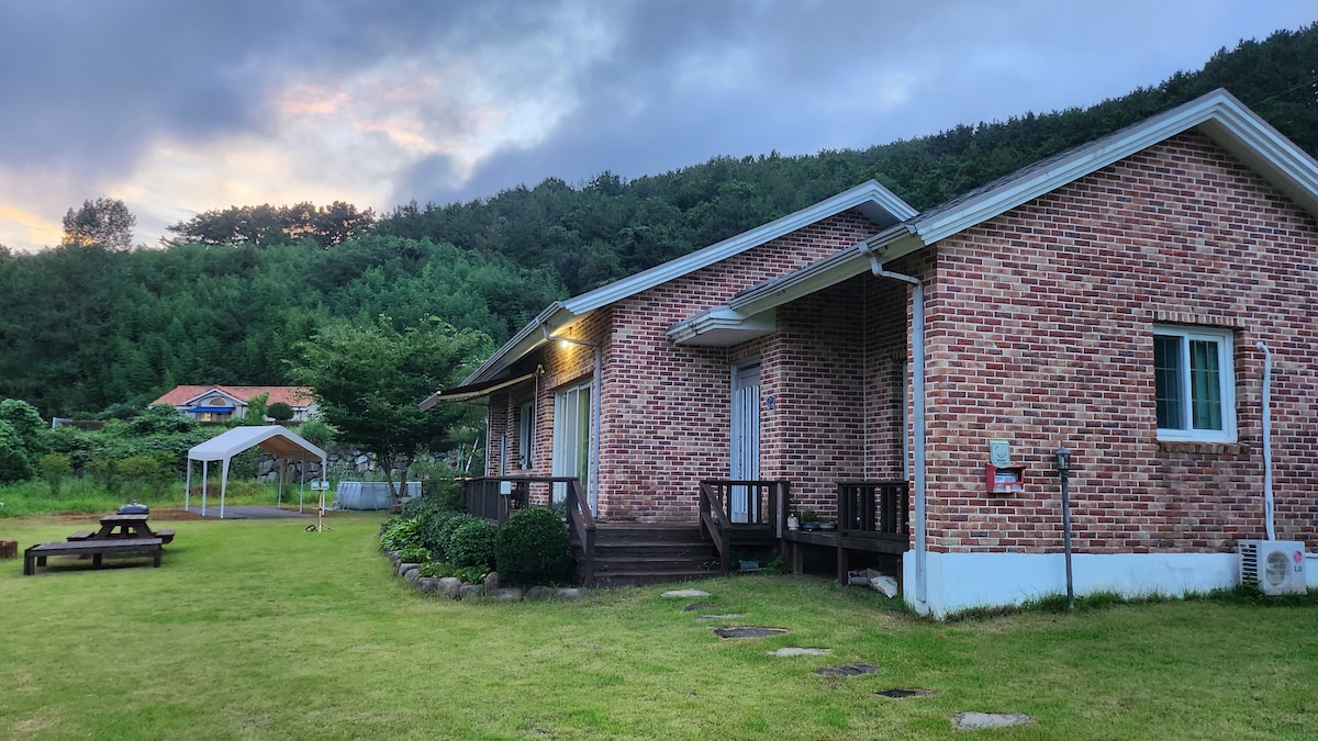 둔덕면 거림마을 위쪽 산아래에 위치해 맑은 공기와 시원한 조망을 자랑하며 넓은 잔디밭과 직접 따 드실 수 있는 텃밭엔 친환경 제철채소가 있습니다 여름엔 넓은 마당의 야외풀장에서 시원하게 물놀이하고 나무사이 해먹에서 휴식하며 바베큐그릴에서 삼겹살 구이도 즐길수있는 가족단위 휴식공간으로 최적지라 생각됩니다 주변엔 역사와 문화를 간직한 둔덕기성과 청마문학관.청령정, 많은 사람들이 찾는 산방산과 산방비원이 있으며 인근 청마들녁엔 가을이면 코스모스가 만발합니다 이곳에 오시면 청정한 자연과 더불어 힐링하며 인근 명소도 돌아볼 수 있는 일석이조의 알찬 휴식시간을 가질수 있습니다 게스트와는 언제든 전화(010 3861 2415)와 문자로 소통 가능합니다