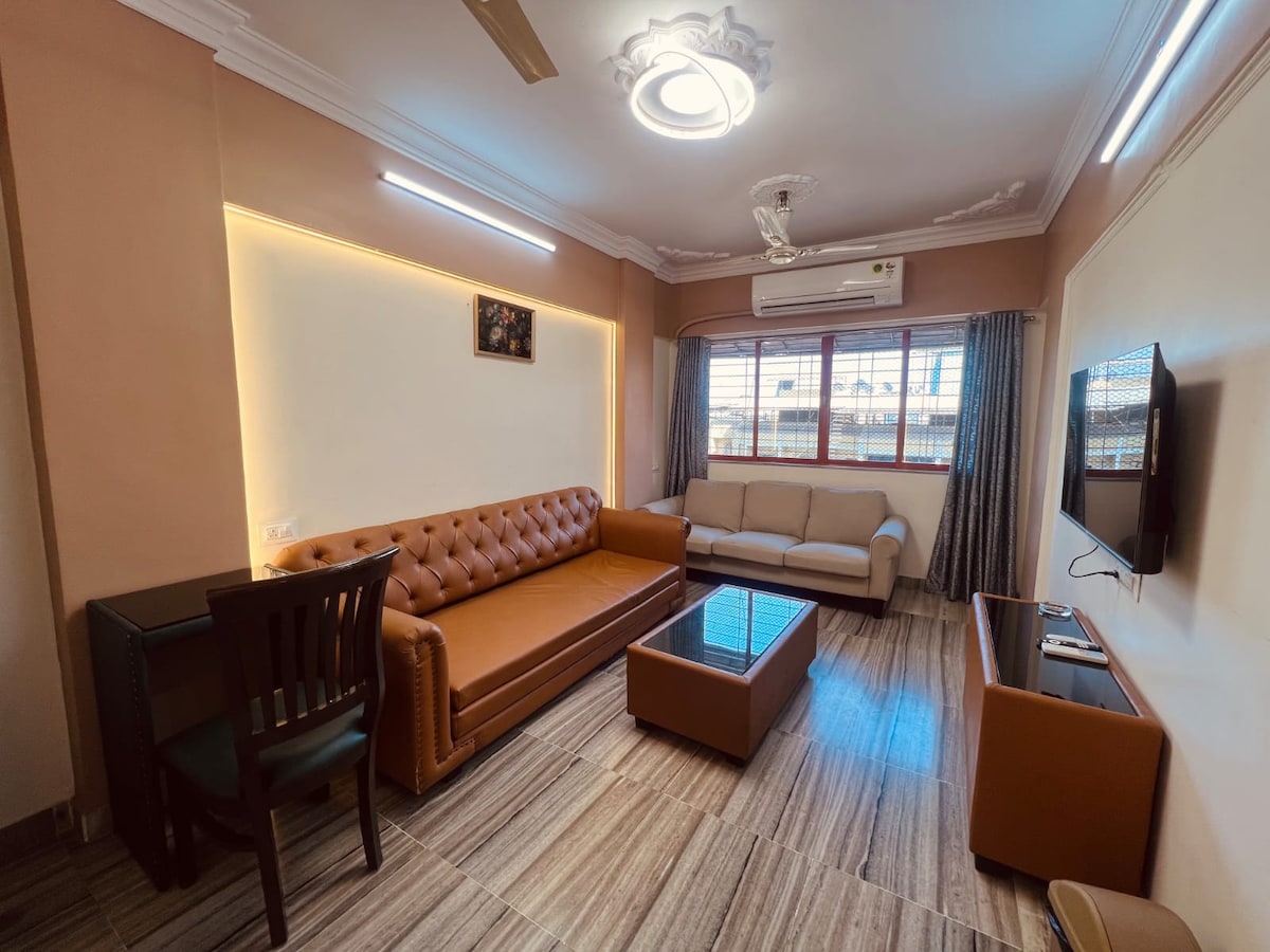 Experience comfort and elegance at City Homes – Crystal Apartment (2BHK) near BKC. Featuring a stylish living room with L-shaped sofa-cum-bed, Smart TV, and AC; a fully equipped kitchen; dining area; and two spacious bedrooms with attached washrooms and balconies. Ideal for families or business travelers seeking convenience, style, and a homely stay in the heart of Mumbai.
