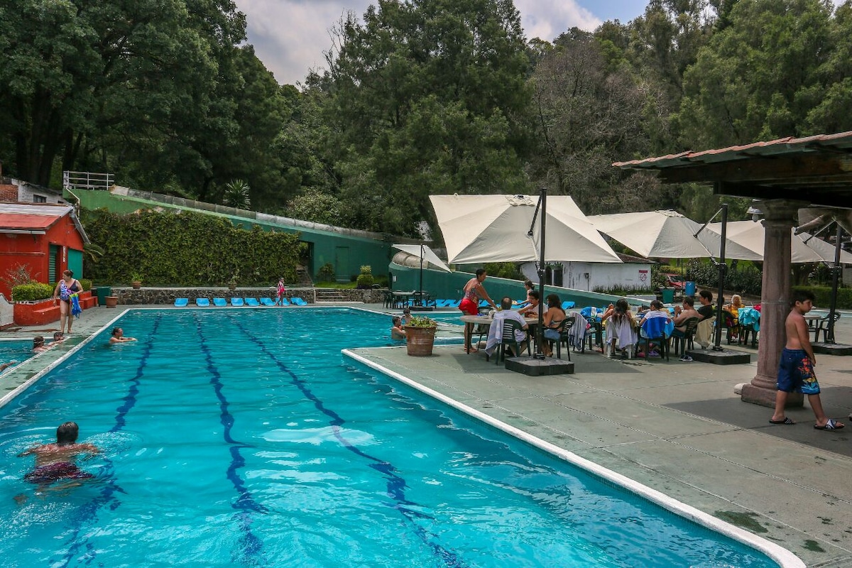 Beautiful country house surrounded by nature, the best place to rest and disconnect from the city with your family. The house has a beautiful terrace with a pool, 3 bedrooms each with a full bathroom, a garden with a fire pit. The house includes high-speed internet (200 mbps) perfect for home office or streaming, and is also a gated community with excellent security. The neighborhood has home delivery services such as Walmart, Chedraui, and didi food.
