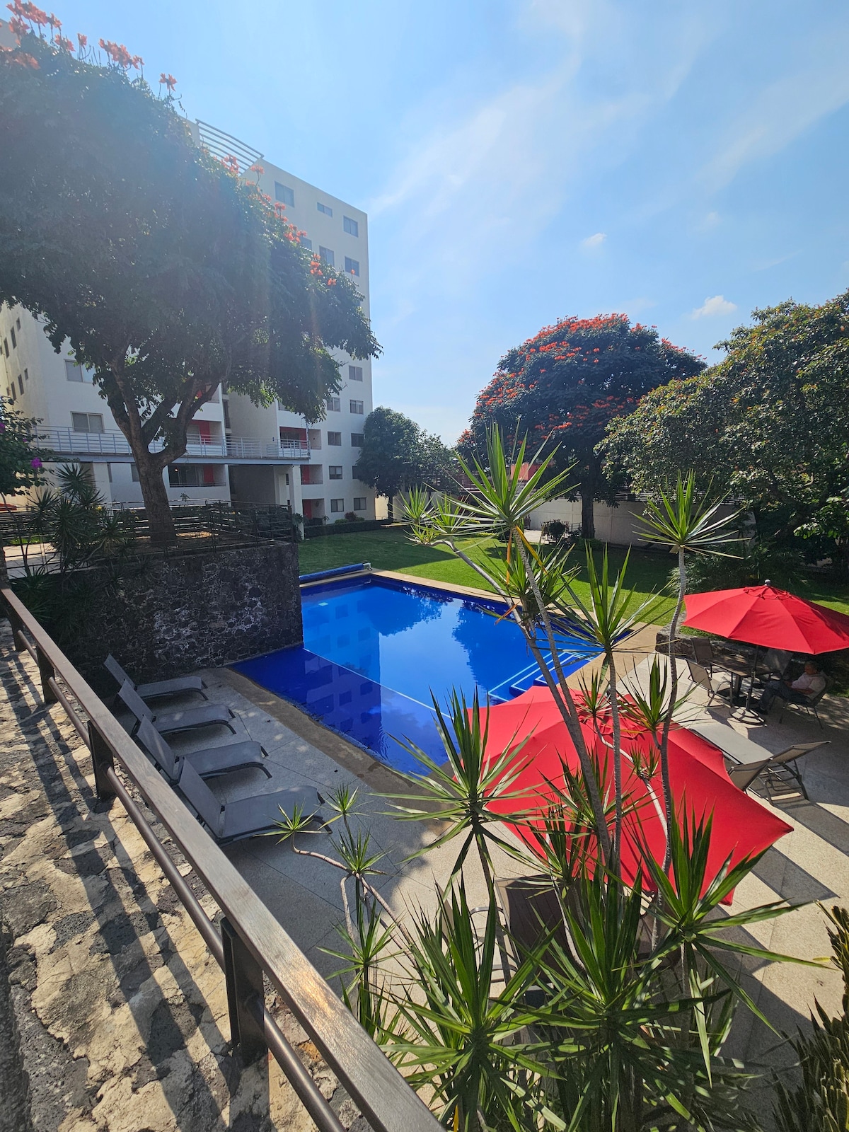 Hermoso departamento tipo suite de hotel, el departamento se encuentra súper ubicado cerca de todo en Cuernavaca, las áreas verdes son extraordinarias con 2 albercas increíbles, mucha tranquilidad, cafetería con servicio a el departamento, estacionamiento para visitas, vigilancia 24/7 Recepcionista, gimnasio, mesa de ping pong, encendido de iluminación con tarjeta, muy modernos y nuevo para disfrutar un fin de semana en Cuernavaca y disfrutar el gran clima, excellent and beautiful apartment