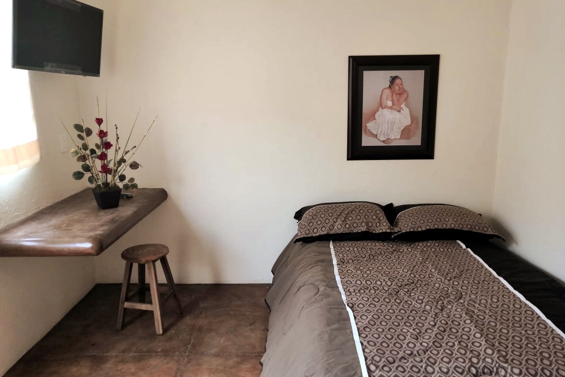 Apartamento privado para estrenar con hermosa decoración. 1 cama matrimonial, baño completo, pequeño patio trasero privado con lavadero, pequeño refrigerador, microondas, SmartTV para conectarte a tus cuentas de streaming y estacionamiento. Situado en un lugar tranquilo y muy cerca del centro de Cuernavaca y con fácil acceso a transporte público. Existe la opción de servicios adicionales con cobro como lavado de ropa y blancos, aseo diario de la habitación y snack bar a la habitación.