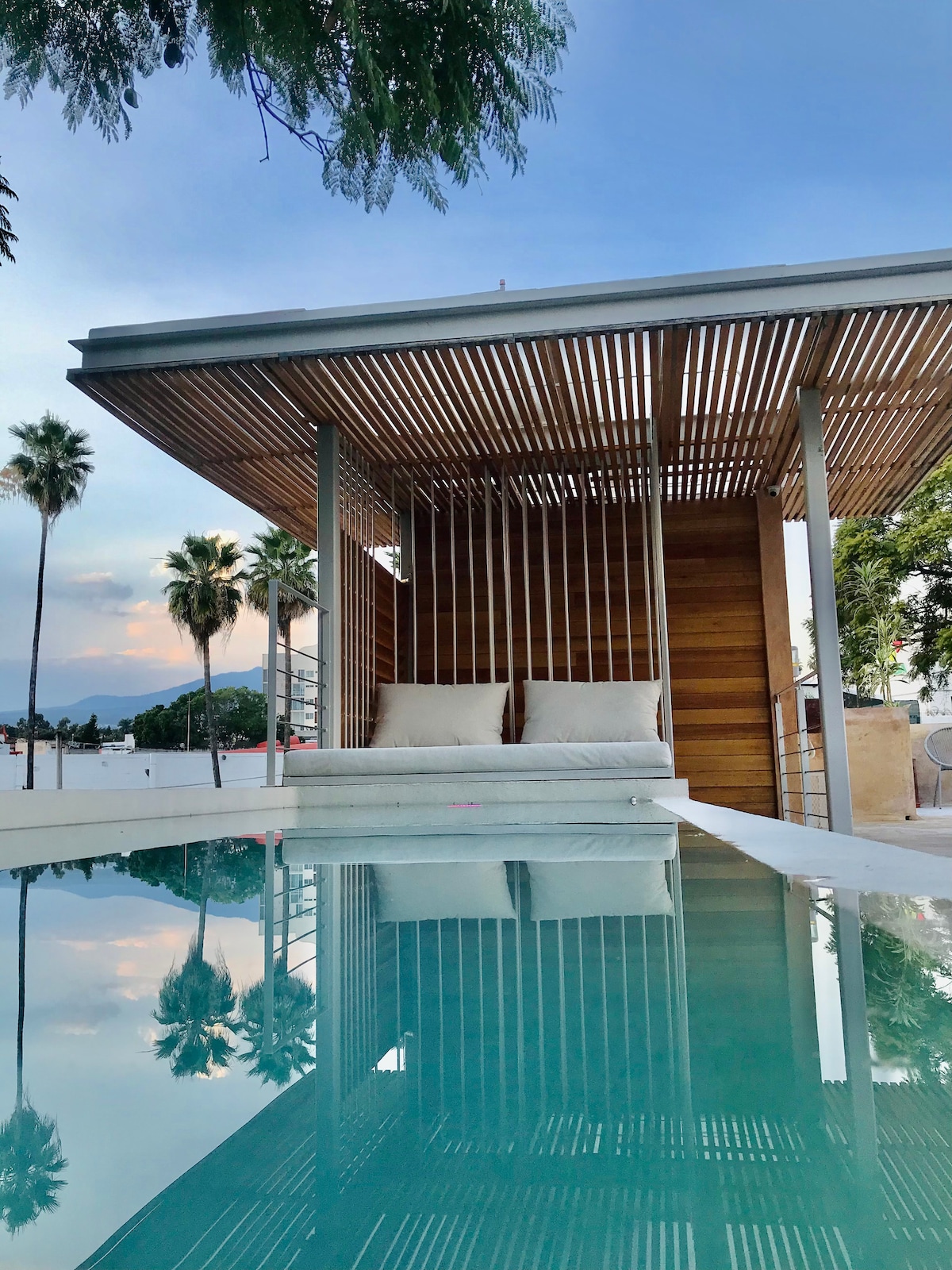 Suite de diseño frente a un histórico parque ubicado en el centro geográfico de la ciudad de Cuernavaca en el barrio tradicional y vibrante de Gualupita. Disfruta de sus grandes ventanales y balcones con hamaca con vista hacia la plaza María Bonita o hacia los árboles del parque. La suite cuenta con WiFi, smart tv, escritorio, baño equipado y cama queen size. Seleccionamos la mejor cama, sábanas y almohadas para garantizar tu descanso.