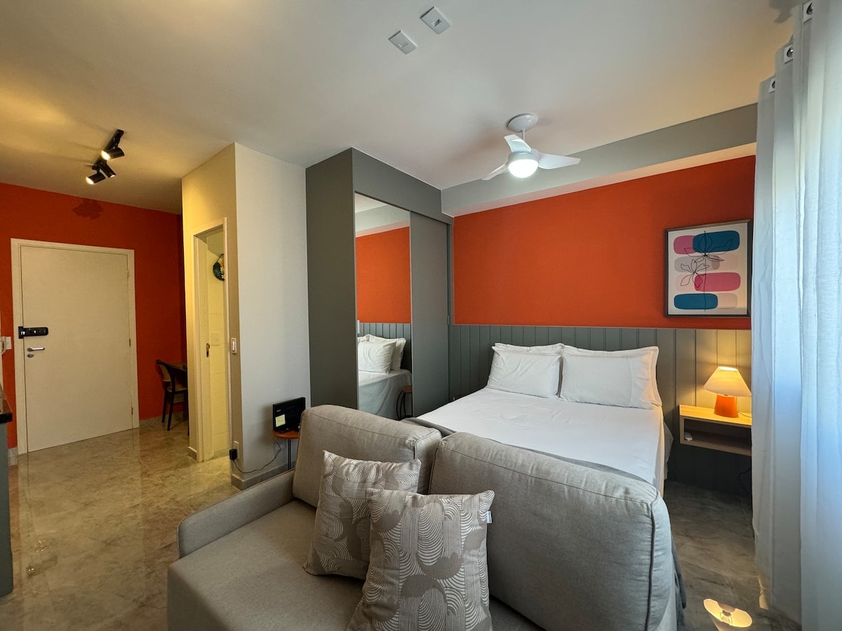 Estúdio compacto e funcional para até duas pessoas. Na Vila Olímpia, um dos bairros mais vibrantes de São Paulo. Próximo à restaurantes, bares, baladas, shoppings, parques e escritórios de grandes empresas. Para quem busca praticidade e conveniência, seja para trabalho, estudo ou lazer. Roupas de cama e de banho de 1ª linha, cama confortável, chuveiro incrível, Lava & Seca (gratuito), Nespresso, louças impecáveis. Com ar condicionado e ventilador de teto para seu conforto. Tudo NOVO.