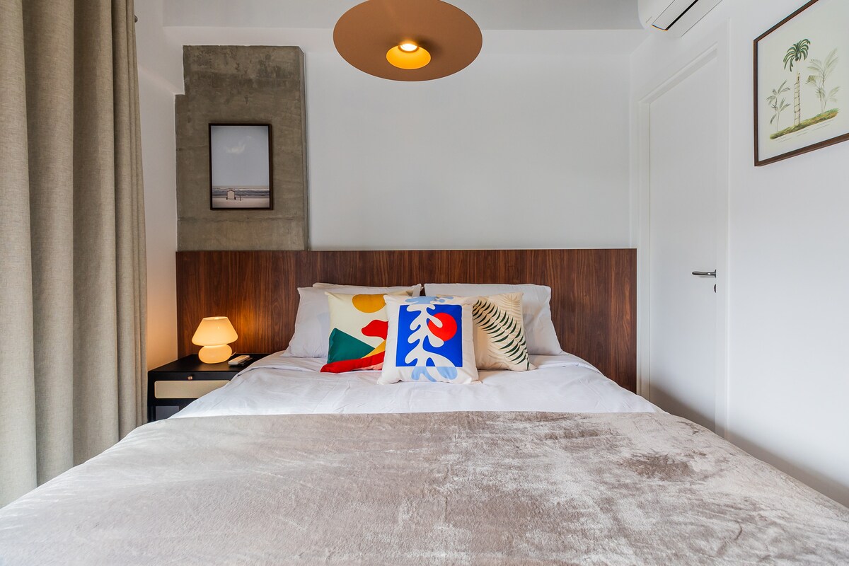 Experience One Eleven in Vila Olimpia. This modern apartment features large windows with breathtaking city views and natural light. The unit boasts 600 Mbps internet and a 4K HD TV. For total comfort, it has a Hot/Cold AC system: 27,000 BTU/h unit in the living room and 10,000 BTU/h in the bedroom. The bedroom is quiet and dark for a restful sleep. Impeccably maintained, you’ll be walking distance to top restaurants and business hubs—a safe, upscale retreat with a stunning urban backdrop.