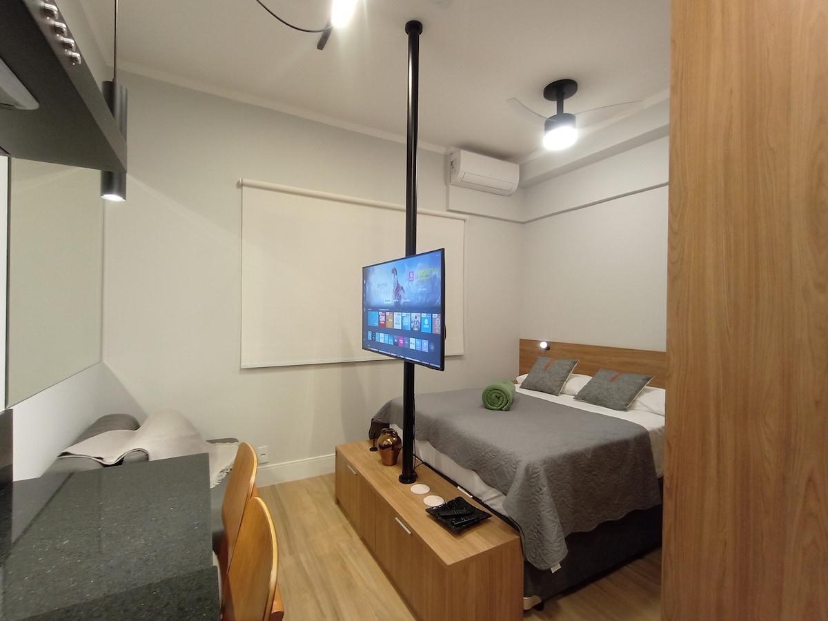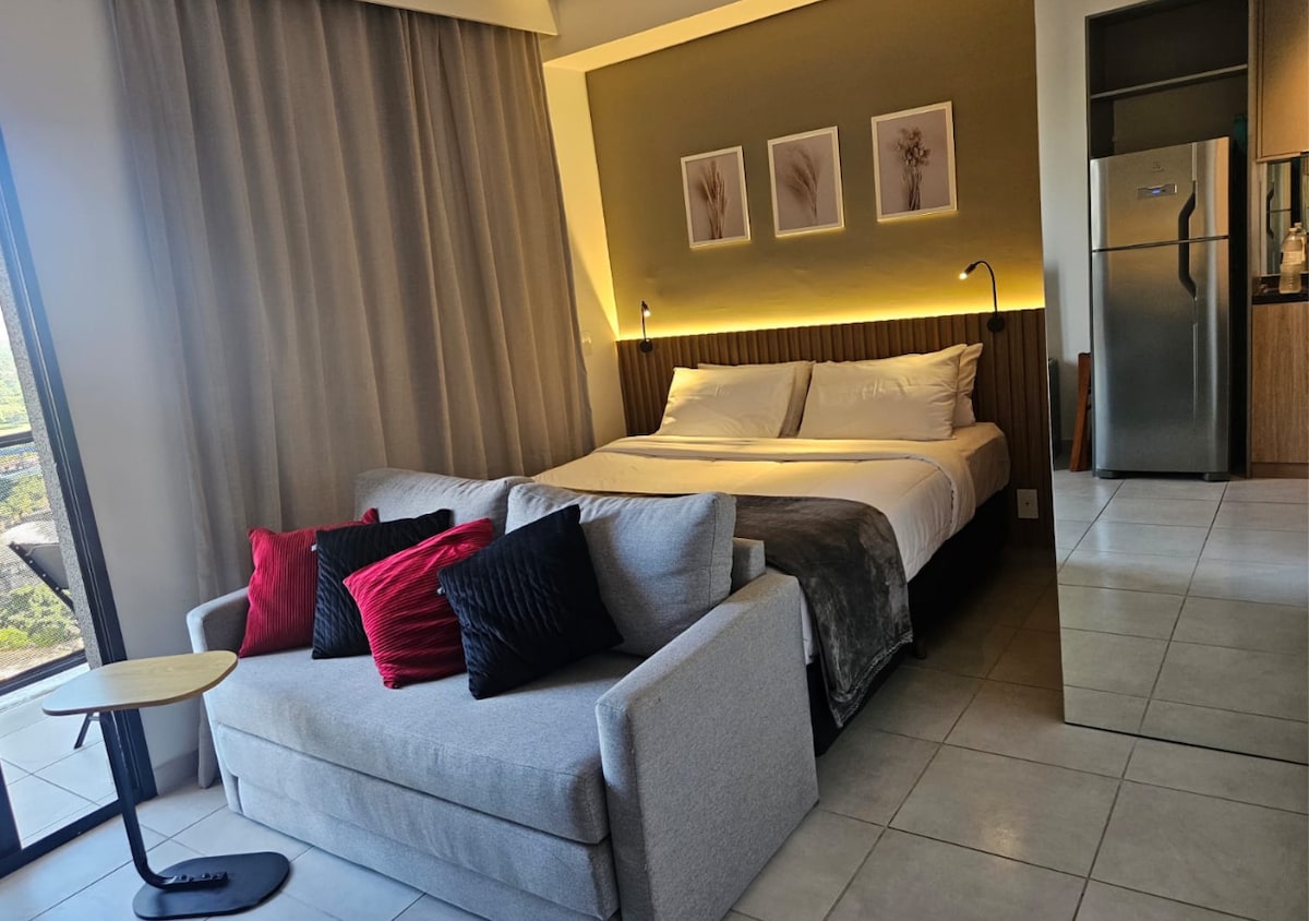 Sua estadia te espera na Vila Olímpia! Studio moderno e acolhedor, pensado para oferecer conforto e praticidade - ideal tanto para viagens de trabalho quanto para momentos de lazer. -Detalhes do espaço: Duas camas de casal com enxoval completo, banheiro, secador de cabelo; Cozinha funcional completa, TV Smart, Wi-Fi, kit de primeiros socorros. Informações importantes: - Check-in a partir das 15h e Check-out até às 11h - Proibido fumar - Proibido animais - Festas e eventos não são permitidos