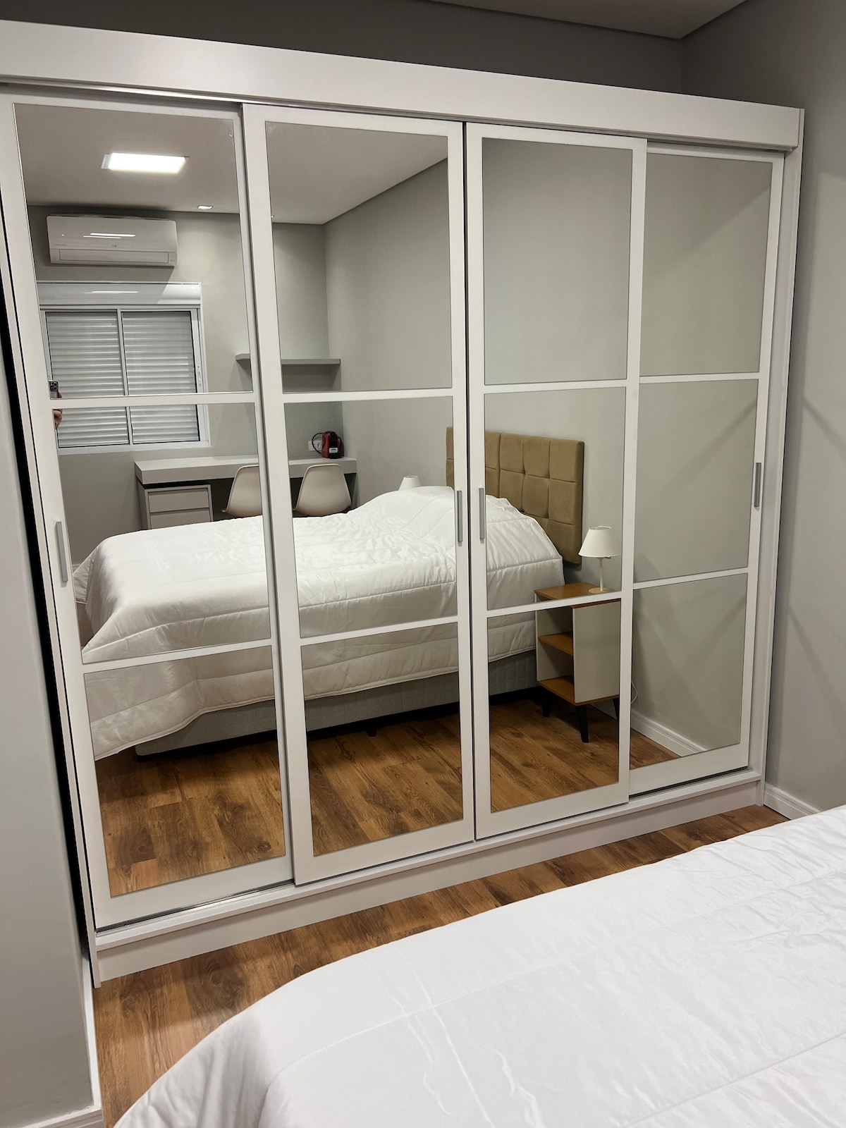 Hospedamos até 4 hóspedes com uma cama de casal no andar superior e um sofá cama de casal no andar inferior. Consultar disponibilidade do sofá cama por favor. Administramos 20 apartamentos nesse prédio, todos no mesmo padrão e tamanho, só muda decoração, nos consulte. Flat tipo Loft residencial. Com estrutura hoteleira. Alto padrão com muito conforto. Serviços de arrumação, Wi-Fi 100 mbs, ar condicionado, estacionamento incluso, recepção 24hs, cozinha completa, enxoval de cama e banho.
