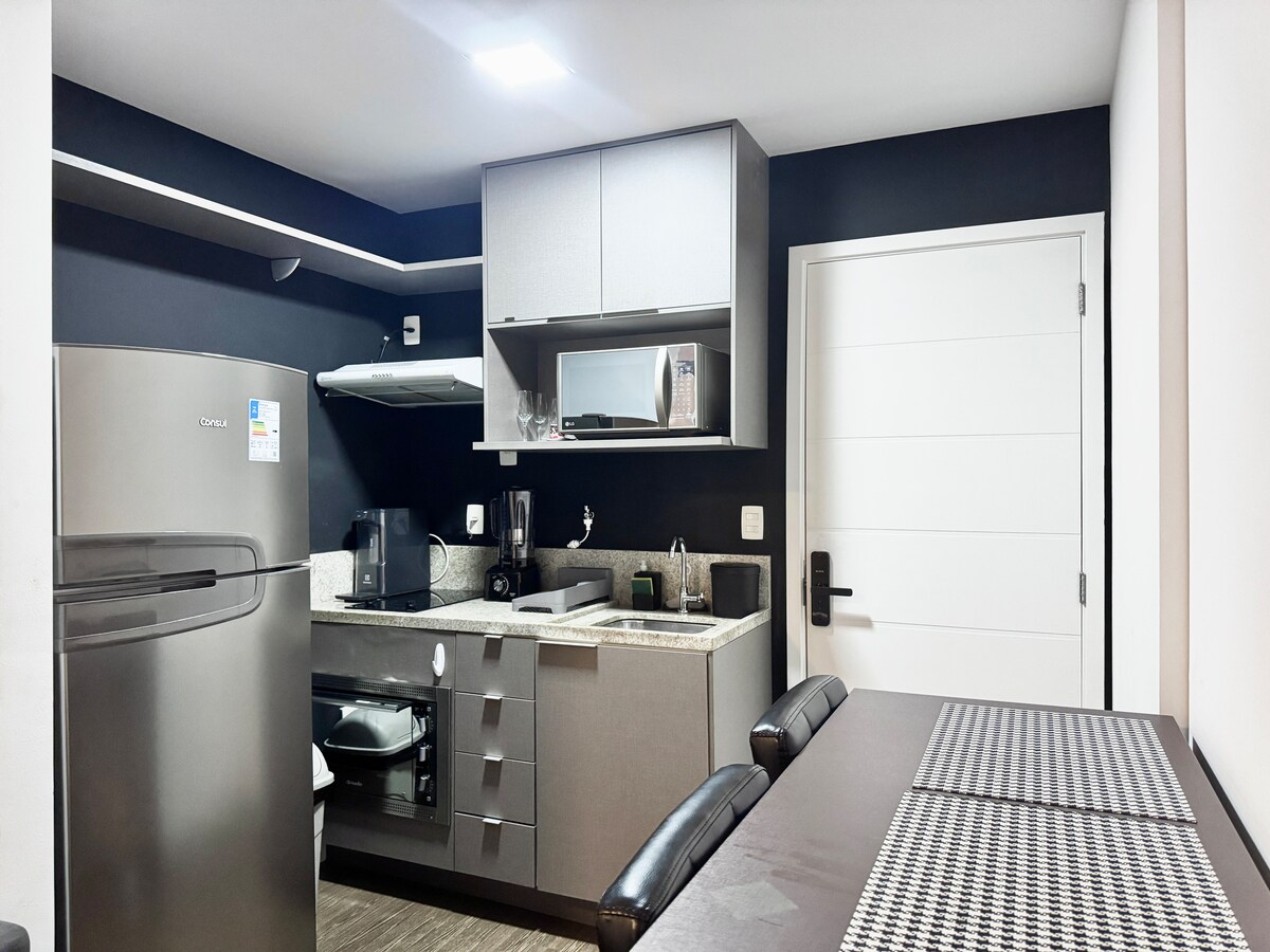 Apartamento com localização privilegiada, em rua tranquila e arborizada em edifício exclusivo, com poucas unidades, com piscina e uma vaga demarcada para estacionamento. Apartamento de estilo atual, com duas suítes, home office, sala de estar em dois ambientes com TV e sala de jantar para oito pessoas, cozinha completa, com varanda, ar condicionado quente e frio em todos os ambientes, com móveis de design, vista ampla, Wi-Fi Ultra rápida, TV a Cabo com seleção completa de canais e streaming.