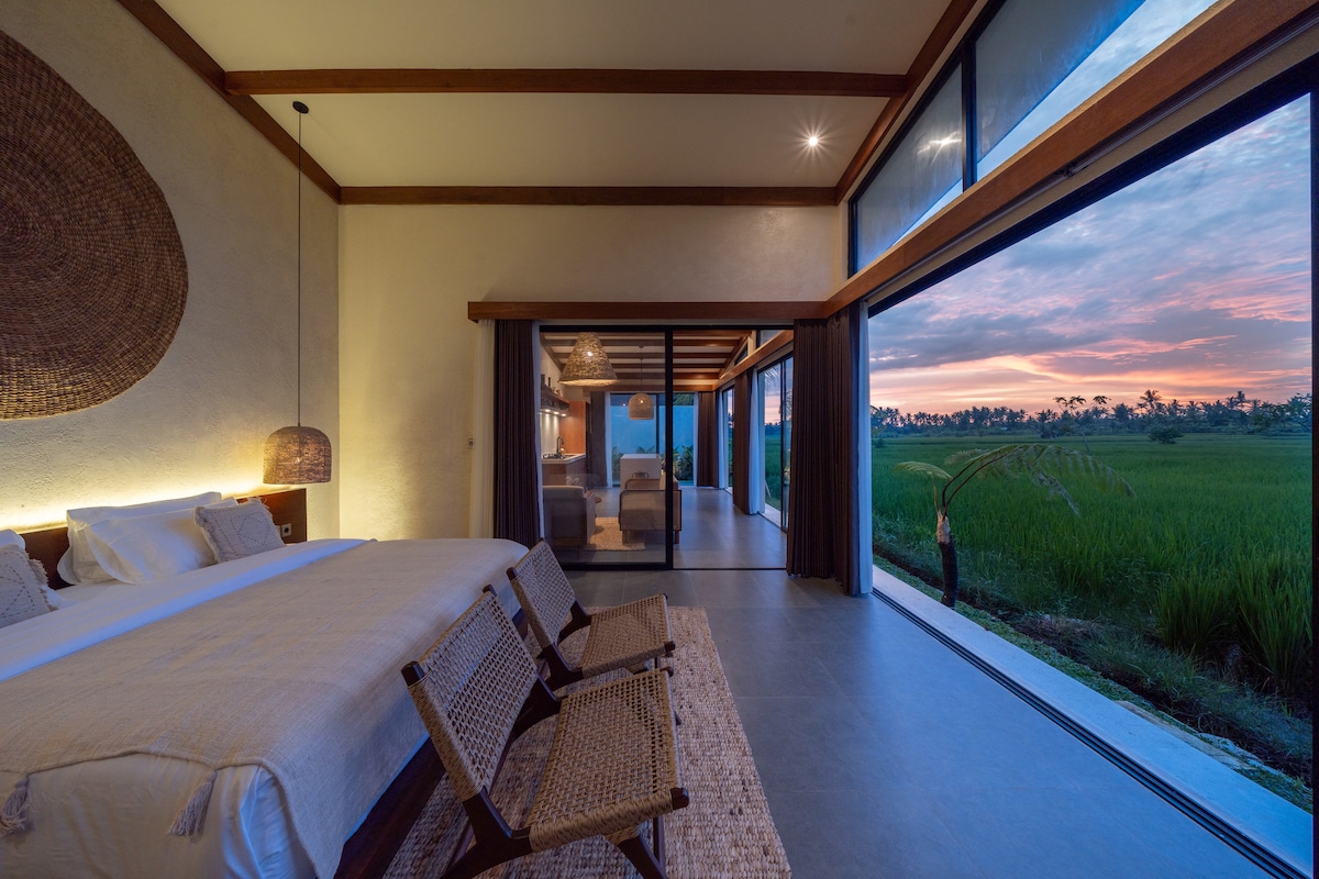 浪漫豪华私人别墅,带稻田景观