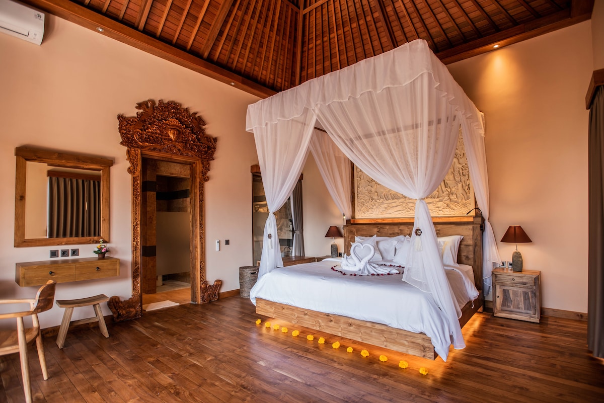 Escape to your own private jungle villa with pool, a secluded sanctuary where luxury meets nature. The Love Ashram is a romantic retreat for deep relaxation & connection. Surrounded by lush greenery, enjoy privacy, jungle views, & a peaceful atmosphere-ideal for couples, honeymoons, & nature lovers seeking a serene escape in Ubud. As part of the living landscape, the rice fields surrounding the villa move through natural cycles—seeded, growing, & harvested—so views may vary throughout the year.