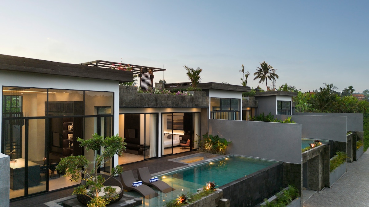 Welcome to our private villa close to downtown Ubud, where style and luxury meet in the most breathtaking way. Our 3-bedroom retreat is perched on the edge of a lush tropical gorge, with a glass-bottomed pool, a treetop yoga deck, and a hidden bar for you to enjoy your favorite libations. The villa is a mix of modern designs with chic furnishings, local artwork, and plenty of cozy nooks to snuggle up in. Come experience the hippest hideaway in town – book now and indulge in the ultimate escape!
