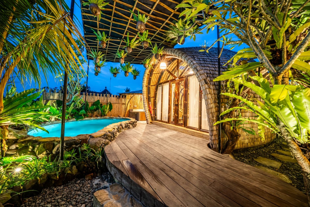 EARTHSHIP Bali is a unique Eco Luxury Private villa situated in a natural village near ubud in the rice paddies. With abundant gardens and natural features, this home allows you to fully experience a grounded, earth integrated luxurious retreat stay while still being close to town for easy access. The space has one of Bali’s only private natural pools, filtered using plants and healthy microbes. Swim with ease knowing you are back to nature.