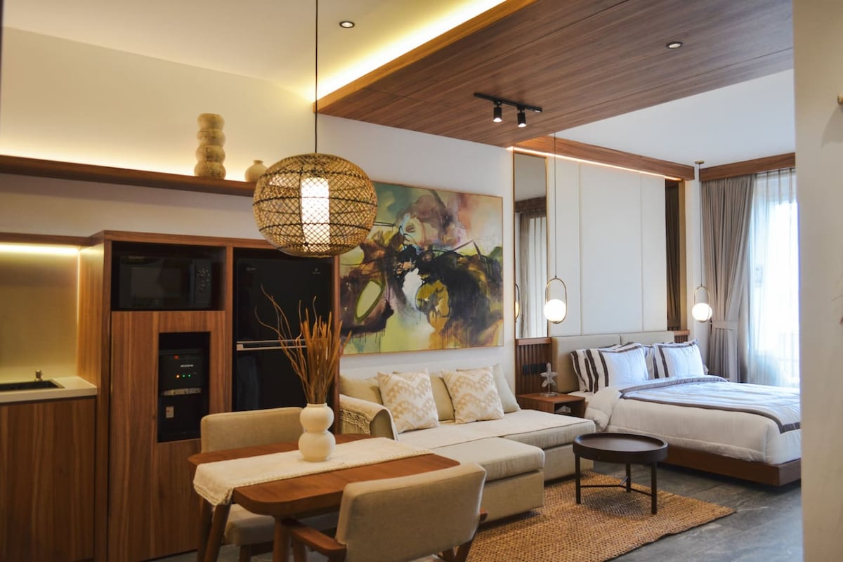 Welcome to Coco Lifestyle Residence A2 | Co-Working • Sauna & Ice Bath! Your dream retreat in Seseh starts here. Coco Lifestyle Residence is a modern lifestyle complex featuring 3 units private villas and 14 units luxurious one-bedroom apartments designed for comfort and style. Located just 5 minutes from Seseh Beach and 10–15 minutes from Canggu, you’ll enjoy easy access to cafés, restaurants, and nightlife—while staying in a peaceful, relaxed setting.