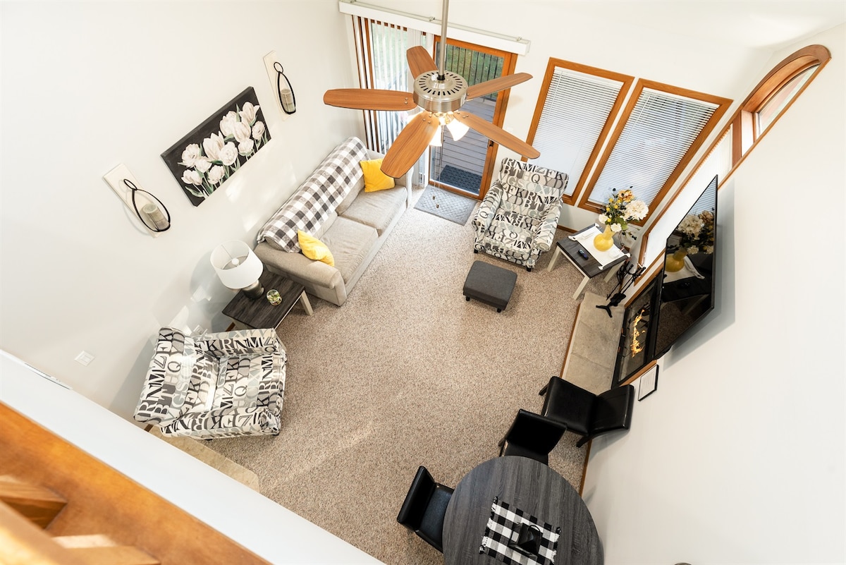 Welcome to the Airy Aerie: an avian themed townhome in the heart of the Galena Territory. Our space has been carefully curated to reflect the diversity of birds you will find in the natural surroundings of the area. There are two ensuite bedrooms and a full kitchen featuring granite countertops and stainless steel appliances. There is a loft space upstairs where a rollout twin bed can be set up. Our home can accommodate a maximum of 6 overnight guests (assuming 1 person on the twin rollout bed).