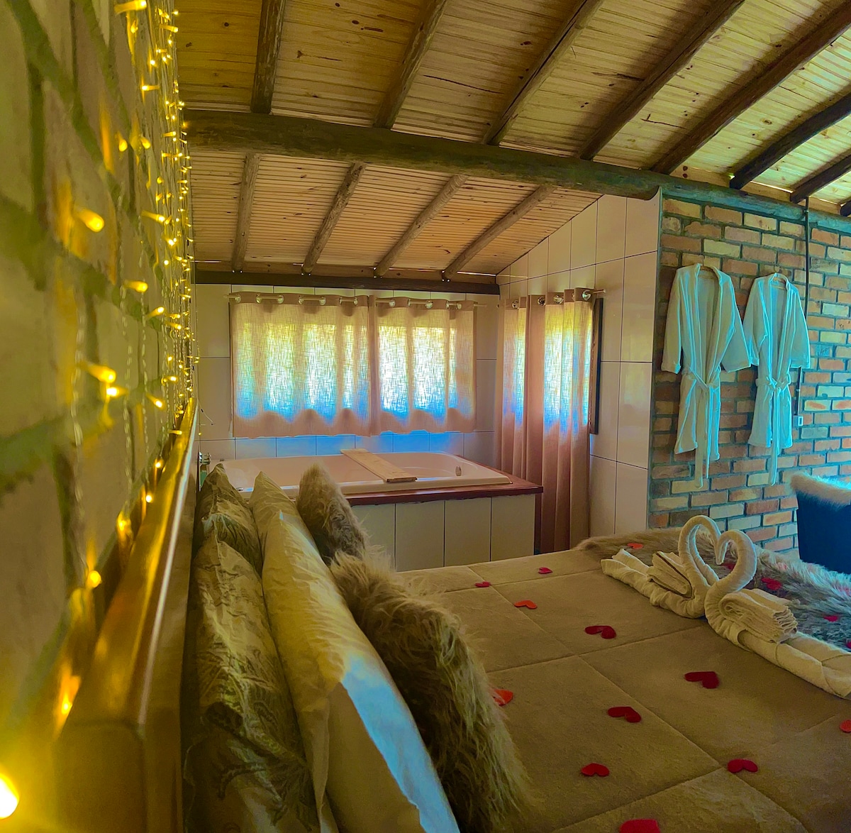 Feita toda em madeira rústica,e decorada para que o hóspede tenha uma experiência inesquecível. Além de contato com a natureza,descanso e tranquilidade. Aproveite o sossego de nossa região para curtir momentos a dois,ou com sua família, descansar e se divertir na Serra da Mantiqueira. Aproveite para relaxar em nossa banheira de Hidromassagem, curtindo uma vista, um momento de paz e tranquilidade em meio à natureza, uma maneira de se desconectar da vida corrida e se reencontrar.