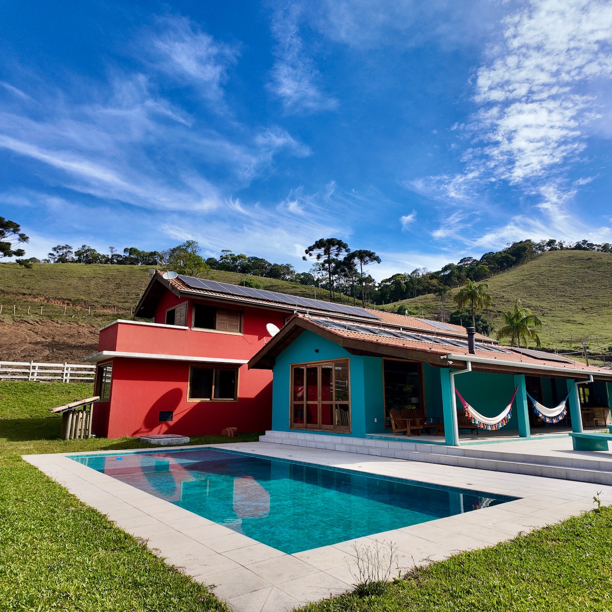 Em meio às montanhas da Serra da Mantiqueira, nossa casa em Joanópolis oferece um ambiente acolhedor e tranquilo, ideal para momentos de descanso e lazer. Com espaços amplos, bem cuidados e equipados, garante conforto e privacidade durante sua estadia. O contato direto com a natureza tornam cada instante especial, enquanto o clima agradável da serra completa a experiência de quem busca relaxar e se renovar. Venha se hospedar com a gente. Será um prazer receber vocês.
