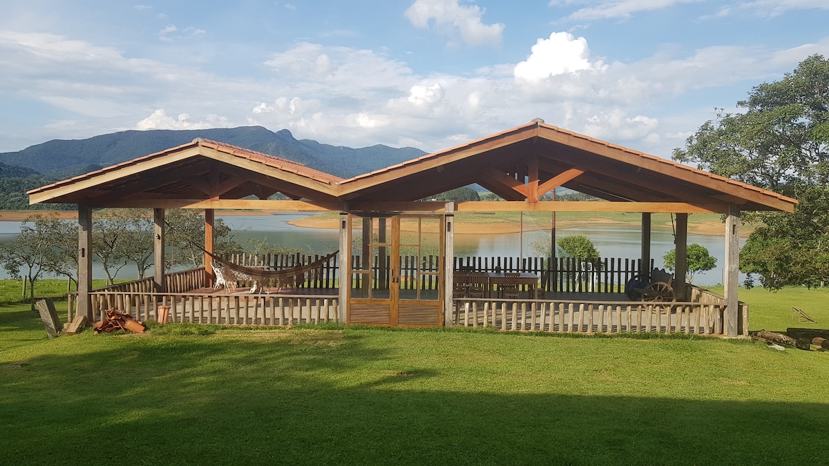 Casa do Lago tem arquitetura contemporânea e é literalmente sobre um lago, numa pequena fazenda na beira da represa. 2 suítes, até banheiros têm vista para o lago, bancada de cozinha com utensílios diferenciados e boa churrasqueira portátil. Quadra de Beach Tennis, prancha de Stand Up, 4 caiaques e 4 bikes. Amplo pier na represa, prainha no lago, redário, local fixo para fogueira, cachoeirinha, trilhas, grande reflorestamento, pasto com gado leiteiro, mesas ao ar livre. Wi-Fi, SmartTV e Alexa.