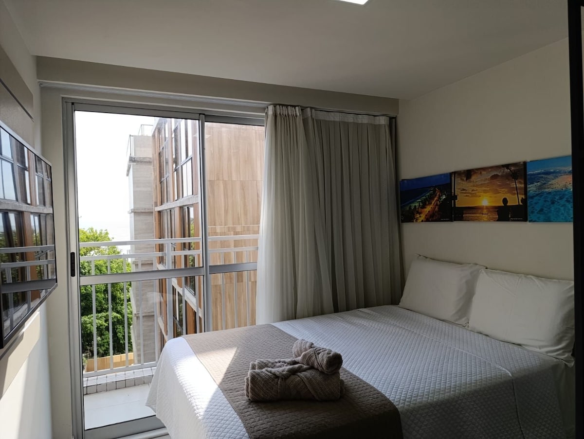 Flat Moderno com 2 camas de solteiro ou uma de casal – Conforto e praticidade no edifício Move Tambaú, a apenas 300m da Praia de Tambaú! A unidade acomoda até 3 pessoas, com cama casal que se dividem em 2 camas solteiro, e um colchão auxiliar . Ideal para famílias ou pequenos grupos. O flat é mobiliado e equipado com: - Cama confortável, quarto climatizado;- Smart TV, - Wi-Fi, - Ar-condicionado - Cozinha compacta. Disponibilizamos enxoval de cama e banho. Reserve agora e aproveite João Pessoa!