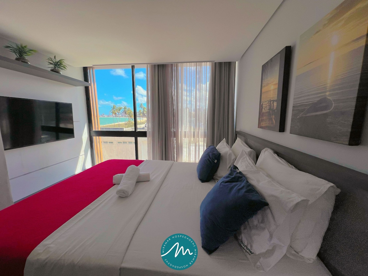 Encante-se neste flat no edifício Alta Garden, Pé na Areia, ideal para casais que buscam momentos especiais. Com varanda e uma vista deslumbrante para o oceano, o ambiente é climatizado e aconchegante, equipado com cama de casal e todos os itens essenciais para sua estadia. A cozinha conta com fogão, micro-ondas, cafeteira e utensílios práticos para refeições rápidas.