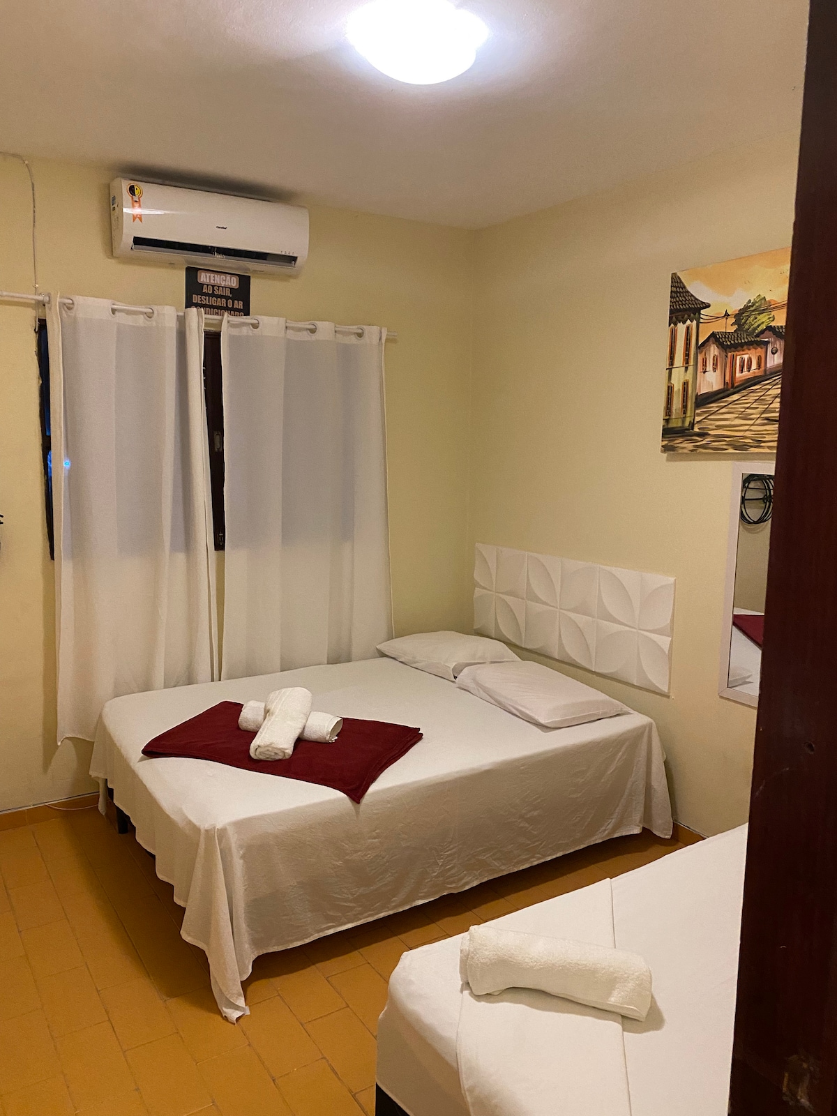 Nossos quartos dispõem de wc privativo, ar condicionado split, chuveiro elétrico, frigobar e tv de LED.