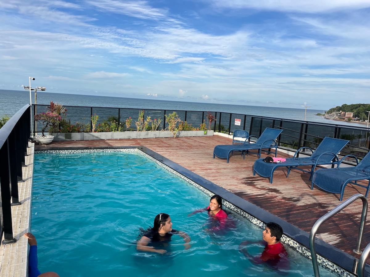 Relaxe com toda a família neste flat mobiliado beira-mar em excelente localização ao lado do Food Parque Cabo Branco com 2 quartos, sofá-cama e garagem. O Puerto Ventura conta com piscina cobertura, lounge, lobby, restaurante, academia, lavanderia, home cinema, brinquedoteca e rooftop gourmet. Serviço de café da manhã à parte. Flat right on the beach, next to the Food Park Cabo Branco with 2 bedrooms and a sofa-bed, fully furnished, parking and breakfast apart. Nous parlons français.