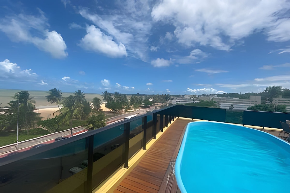 Imagine-se despertando com o primeiro sol das Américas! Nosso espaço une aconchego e praticidade: cama de casal confortável, ar-condicionado, cozinha equipada, Wi-Fi veloz, Smart TV e 1 vaga de garagem rotativa. A piscina na cobertura, com vista panorâmica, convida ao descanso. Limpeza impecável e atenção aos detalhes garantem uma estadia inesquecível. Localização perfeita, a poucos passos da praia, padarias, restaurantes e do Parque Cabo Branco que conta com vários Foodtrucks.
