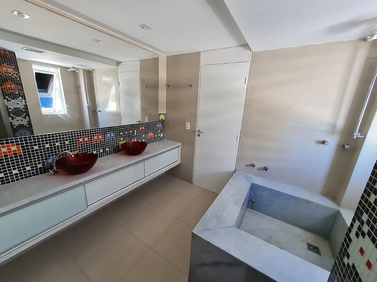 Nosso espaço é aconhegante e bem equipado com tudo que você precisa para curtas ou longas estadias. Temos piscina e jacuzzi na cobertura, recepção e minimercado 24 hrs, lavanderia, estacionamento rotativo e restaurante para café da manhã. Estamos há poucos metros da praia e próximos a pontos turísticos, eventos de reveillon, carnaval, além de bares, farmácias, padarias, academias dos melhores restaurantes de João Pessoa. Venha curtir João Pessoa nesse flat dos sonhos.
