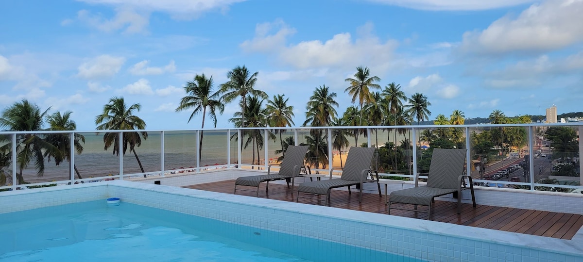 Enjoy comfort and sophistication, ideal for accommodating up to 4 people, including children. Located on the seafront of Cabo Branco beach, close to tourist attractions (Cabo Branco Lighthouse and Convention Center, natural pools) and gastronomic attractions. ✅ 24h reception. Decorated, integrated living room with kitchen, 2 bedrooms (one double and one single with pull-out bed) and 1 bathroom. 🚫No smoking. 🚫We do not accept animals. 🚫We do not provide maid service or breakfast.