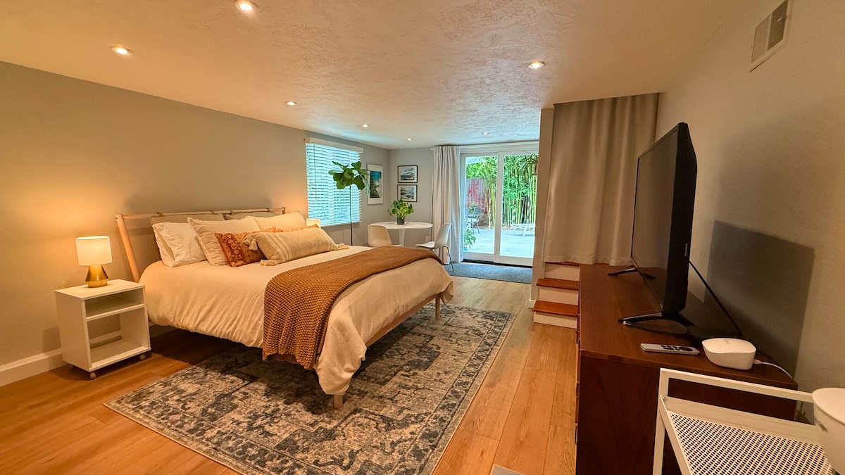 Stay in a modern space curated by Oakland artists! This spacious studio features reclaimed barn wood throughout with eclectic modern furnishings. Snuggle up in the queen sized Casper mattress with luxurious spa quality sheets. Working while traveling? We've got gigabit wi-fi. Couples will enjoy the garden hot tub & outdoor bath with dual shower heads. Just looking to relax? Take a dip in our private outdoor bathing tub. Gated off-street parking & anytime contactless checkin are included too!