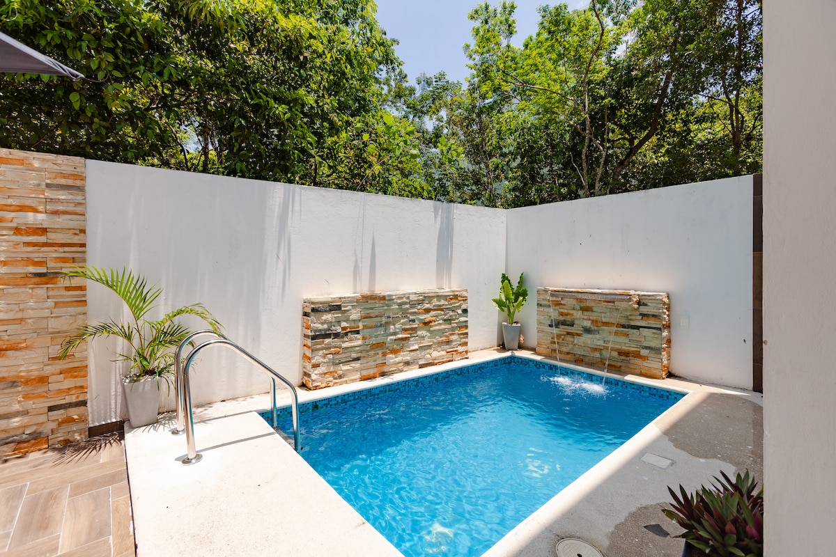 Enjoy a piece of paradise : 120m2 of privacy and relaxation with a beautiful private pool (just for you). A modern, spacious and accommodating full apartment 1 minute from the Caribbean beach, inside the luxury residence of Playacar Fase 1. *King-sized bed *Wi-fi ( good speed to work ) *Full Kitchen *10 min walk from the famous 5th avenue *1 min walk from the beach *Security guard 24/24