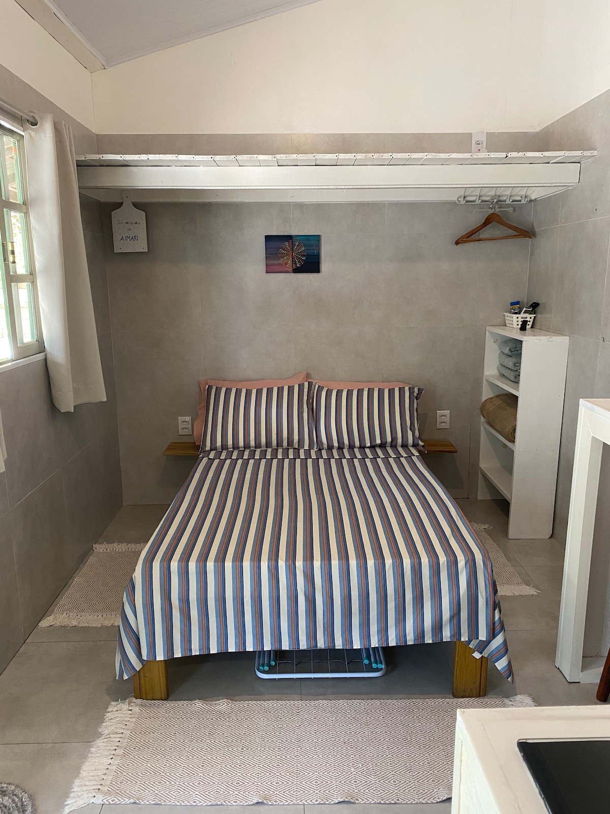 Simple and charming, ideal for individual travelers seeking peace and contact with nature. The studio has a bedroom/living room, bathroom, small kitchen and fast internet for those working remotely. The space has 4 studios sharing the outdoor area, with garden and deck, a pleasant place to sunbathe and relax! The beach is a 5min walk, passing by a preserved Atlantic forest trail, with little monkeys to accompany you on the way if you’re lucky! Diverse local shops at 10min walk.