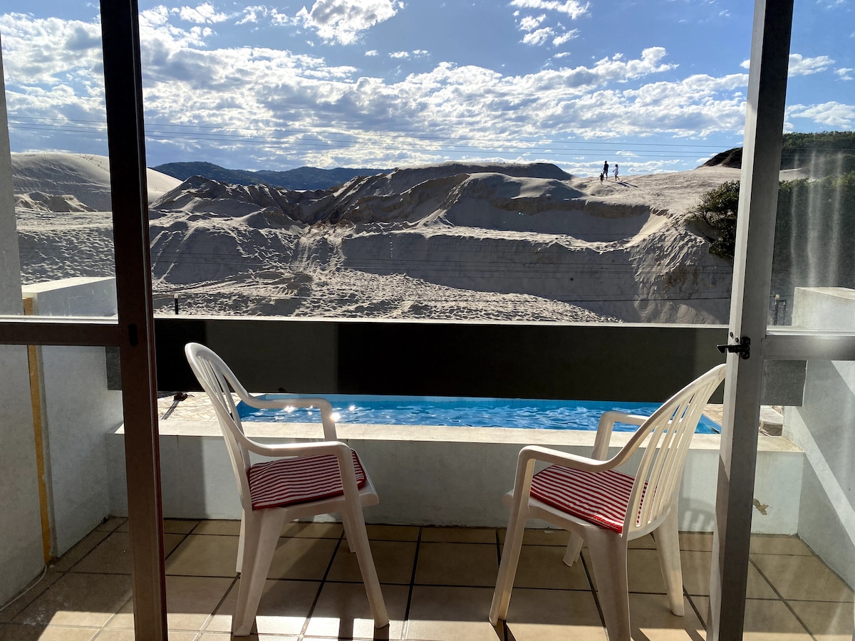 *Please review photos & description BEFORE BOOKING* Modern cozy studio in Villa Mole, w/BEST Lagoa sunset view. Located 5min walk to famous Lagoa (bars, food, music) & Praia Mole (serviced, surfers). Guests have PRIVATE STUDIO --private digital entry, FULL bed, kitchenette w/half fridge (& microwave, hot plate, pots/pans, utensils), dining table, new bathroom (hot shower, towels), balcony. Guests SHARE access to social/external areas: JACUZZI & deck, BBQ/cafe, firepit, gym, laundromat, iron