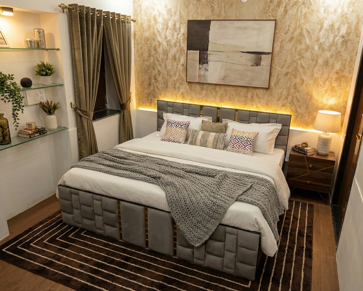 Cozy Urban Nest: Charming 1BR Retreat. Escape to this sunlit 1-bedroom haven in the city heart—perfect for couples or solos. Plush king bed, smart TV & fast WiFi. Full kitchen (fridge, stove, OTG) for easy meals. luxury bath, rain shower. Steps to cafes, parks & transit. Self-check-in, linens/toiletries included. Unwind & explore—book your cozy spot!