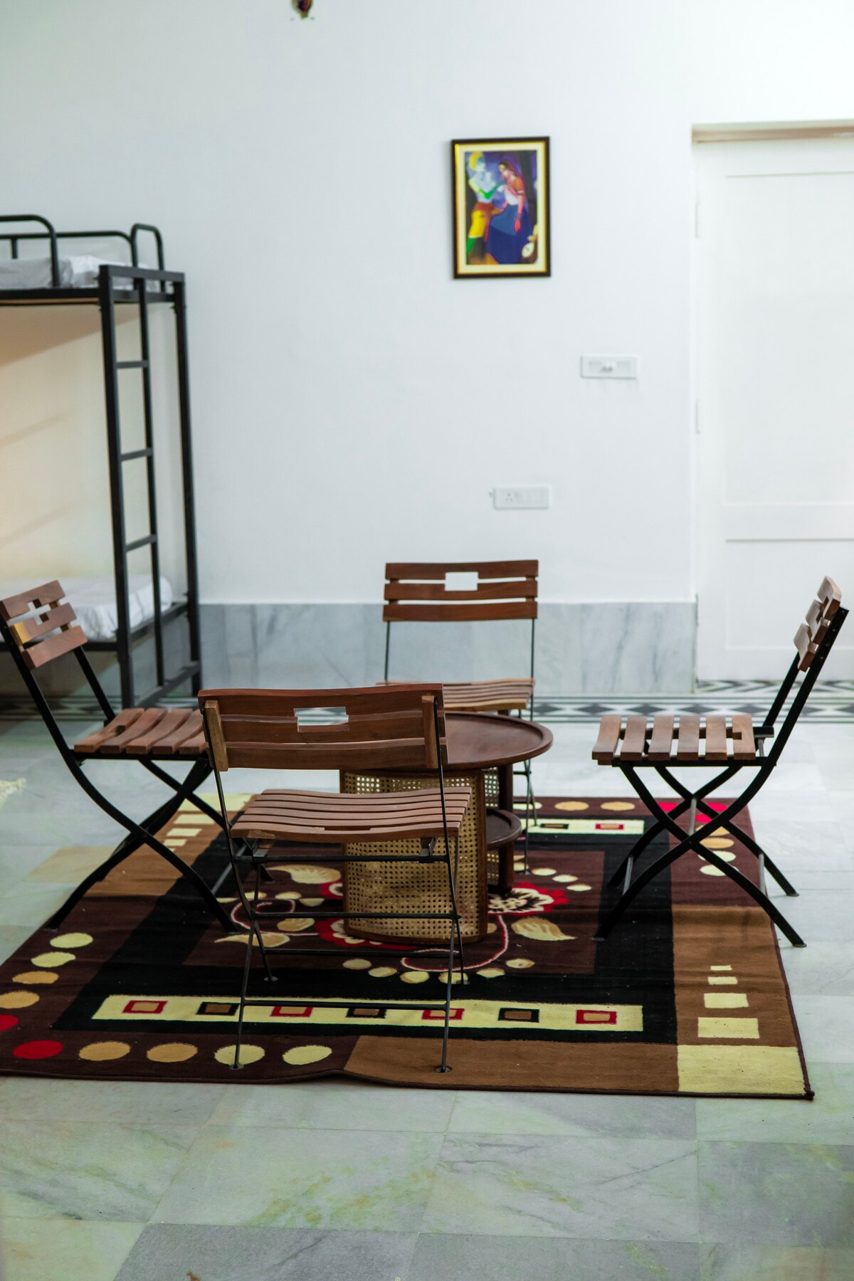 Nestled in Jodhpur, Krishna Villa is a serene escape blending modern aesthetics with cultural charm. Inspired by Krishna and Vrindavan, it features a lush terrace garden and a tranquil fountain, offering the perfect setting for family and friends to relax and reconnect. Pet-friendly & welcoming to furry companions, it promotes a harmonious, animal-friendly environment. In line with its spiritual ethos, Krishna Villa allows only vegetarian food, fostering a peaceful and compassionate atmosphere.