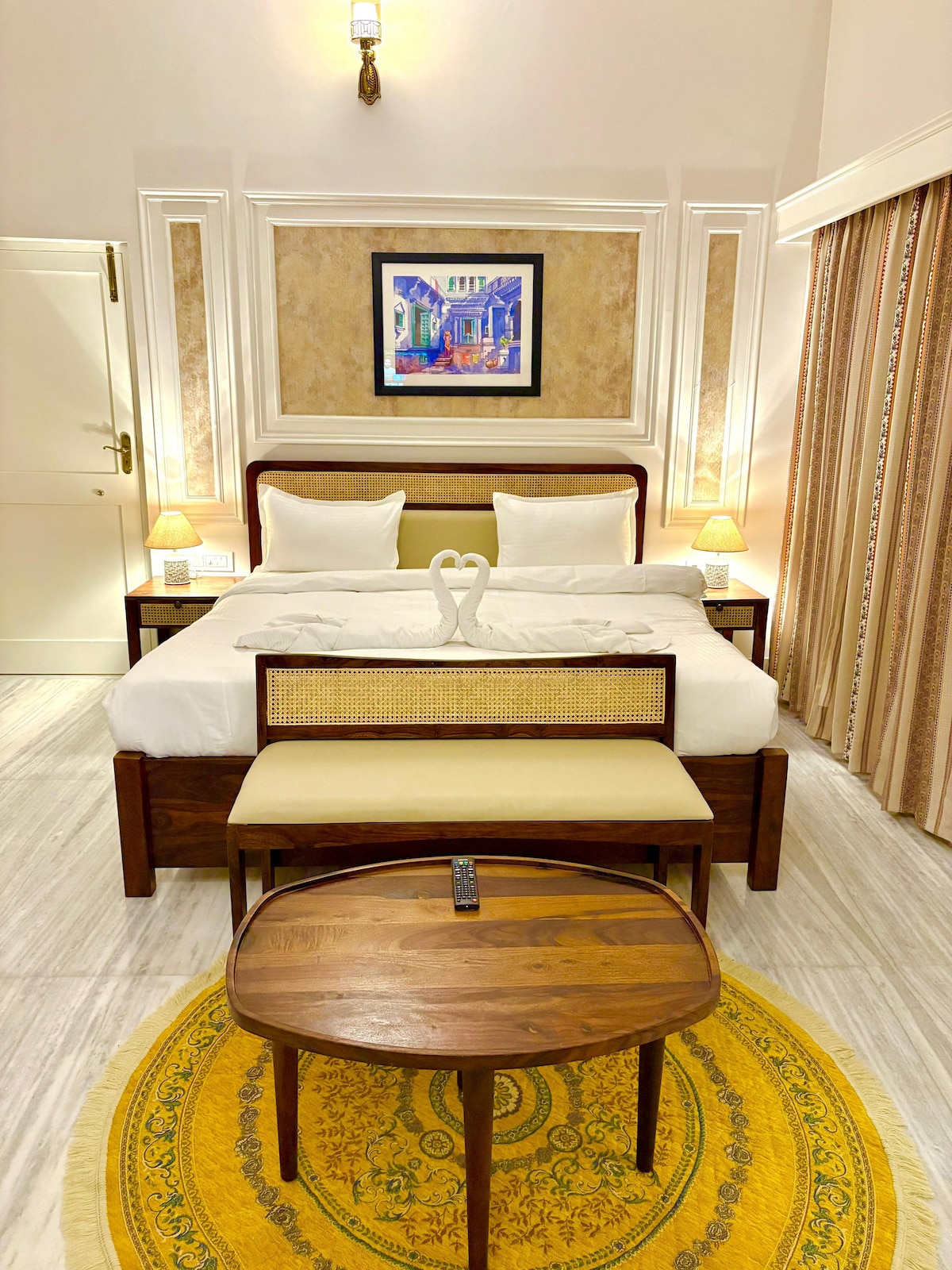 Beautiful Deluxe Room in a mansion set amongst the glorious foothills of the Umaid Bhawan Palace. Located in the heart of Jodhpur, the house is nestled in a tranquil and green neighborhood. With stunning views of the Umaid Bhawan, our beautiful terrace garden is the perfect place to unwind. Our spacious guest rooms weave modern luxury and Jodhpur chic together seamlessly - offering an experience like no other.