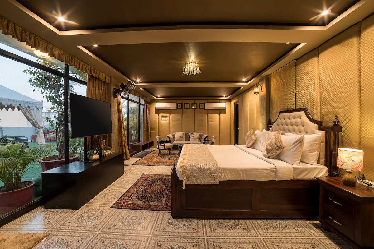 Nestled in Jodhpur, Krishna Villa is a serene escape blending modern aesthetics with cultural charm. Inspired by Krishna and Vrindavan, it features a lush terrace garden and a tranquil fountain, offering the perfect setting for family and friends to relax and reconnect. Pet-friendly & welcoming to furry companions, it promotes a harmonious, animal-friendly environment. In line with its spiritual ethos, Krishna Villa allows only vegetarian food, fostering a peaceful and compassionate atmosphere.