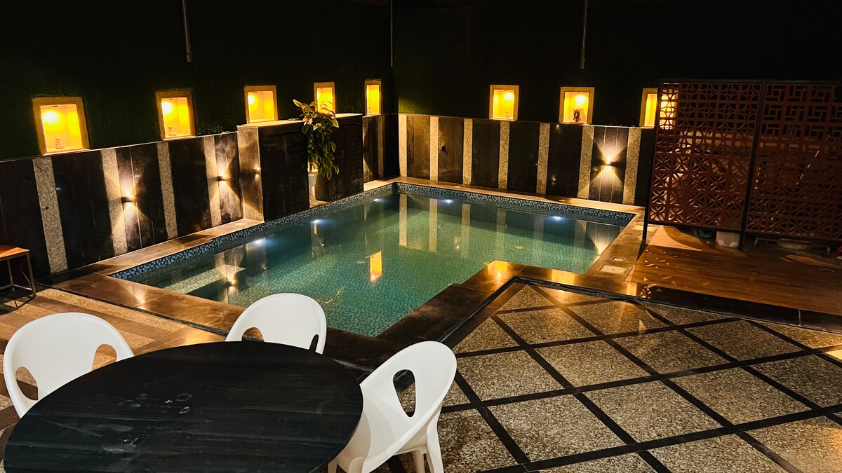 Luxurious 4bhk Pool Villa in Jodhpur Welcome to our stunning luxury villa in Jodhpur, Rajasthan where traditional Indian charm meets modern elegance Our beautifully designed villa is perfect for families, couples, and group travelers seeking a luxurious stay Villa offers -Our villa boasts 4 fully furnished AC bedroom . -A private swimming pool with Jacuzzi -The lush garden area -Parking -luxurious living room -Modern kitchen fully equipped with appliances and cookware -Full time caretaker